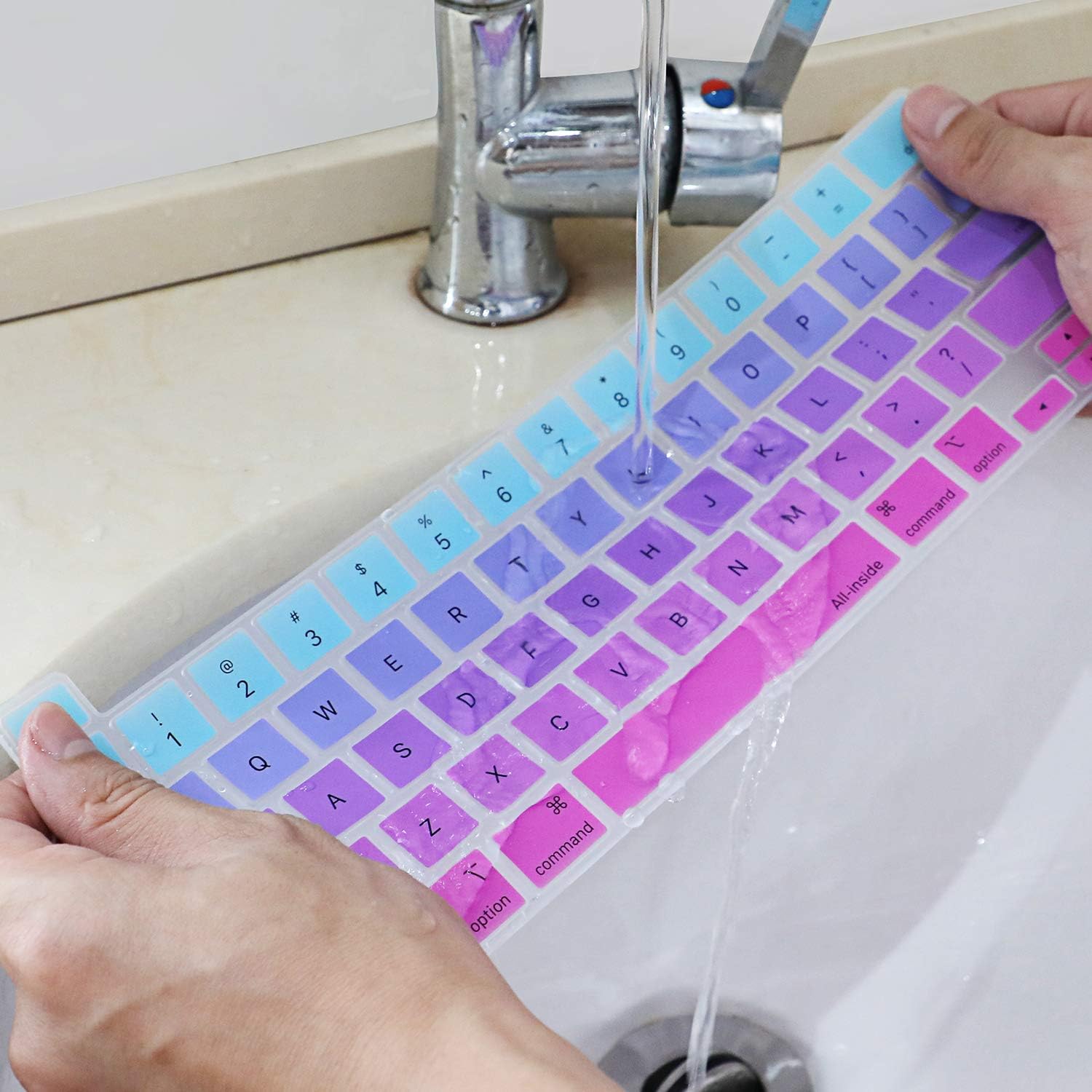 Allinside Keyboard Cover Skin for 2020 MacBook Pro 13 inch A2338 M1 A2251 A2289 and 2019 MacBook Pro 16 inch A2141 with Touch Bar & Touch ID, Ombre Blue Pink