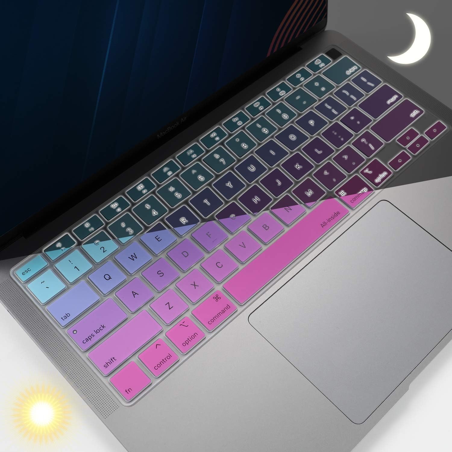 Allinside Silicone Keyboard Cover for New MacBook Air 13 inch A2179 Released in 2020 with Touch ID and Retina Display US Version, Ombre Blue Pink