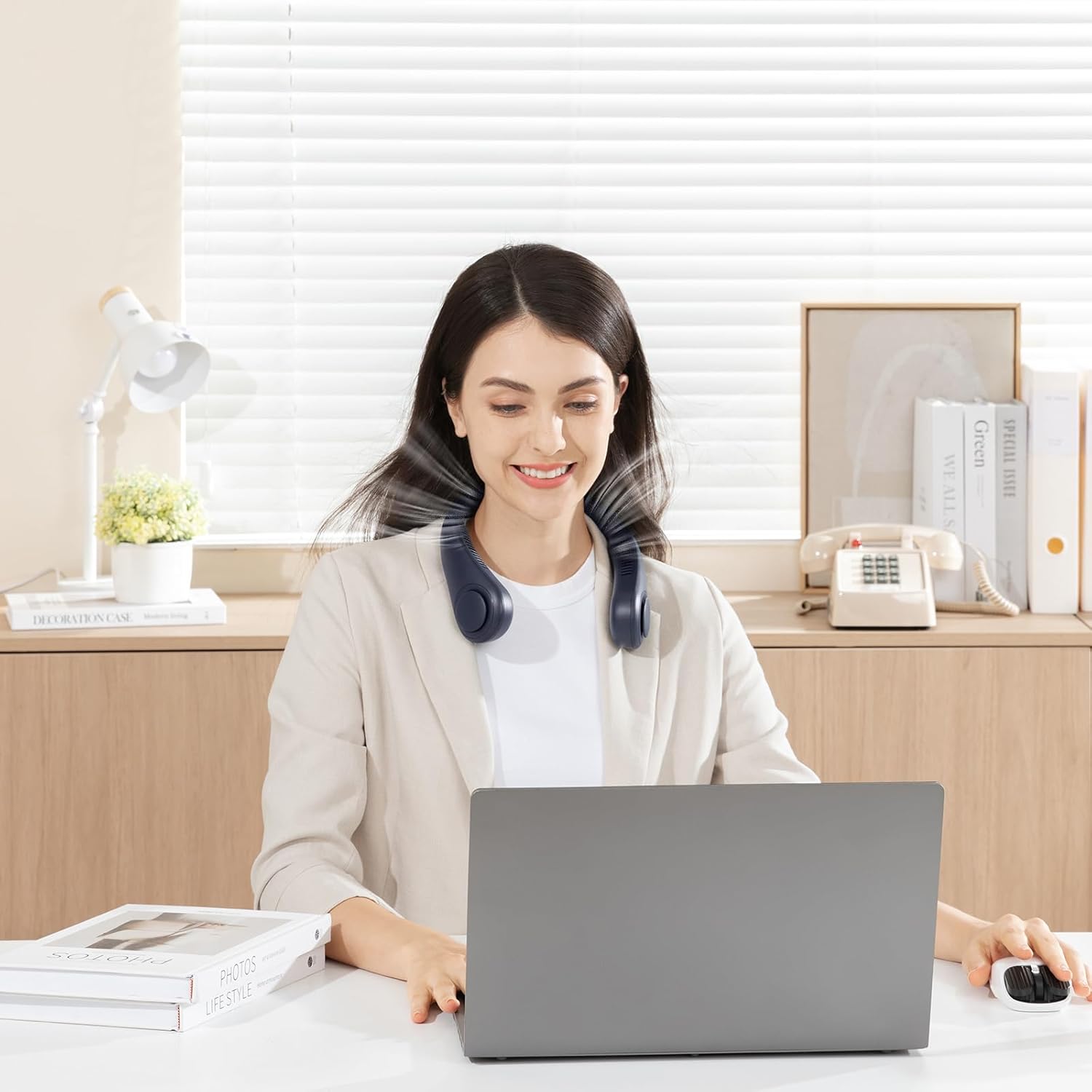 - 【Compact Design】Personal neck fans weigh about 9.1OZ and are ultra-light, putting less strain on the neck.When using the fan, you don't have to worry about your hair getting caught on the fan blades.