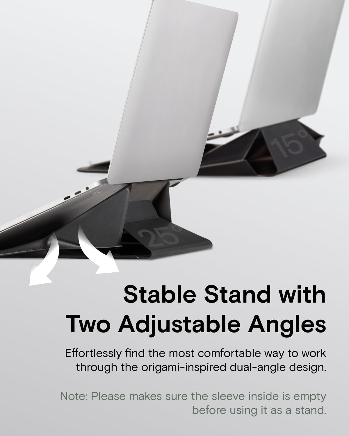 - Two Angles Laptop Sleeve Stand: Instantly convert this sleek Laptop Sleeve into a sturdy Laptop Stand. Features dual-angle adjustment (15° for typing; 25° for viewing) to elevate your screen, reducing neck/wrist strain from poor posture. More than a protective Laptop Bag, this ergonomic Computer Bag works anywhere – transforming your carry sleeve into a pain-relieving workstation.