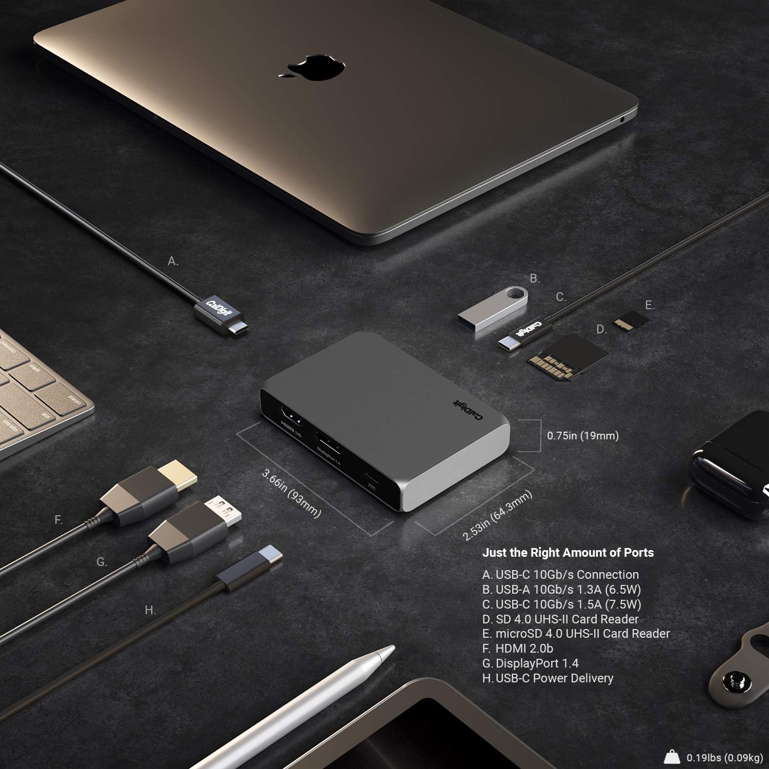 CalDigit USB-C 10Gb/s SOHO Dock - Up to 4K 60Hz, HDMI 2.0b, DisplayPort 1.4, 10Gb/s USB A & USB C, UHS-II microSD and SD Card Readers, Bus Power and Passthrough Charging, Steam Deck Compatible