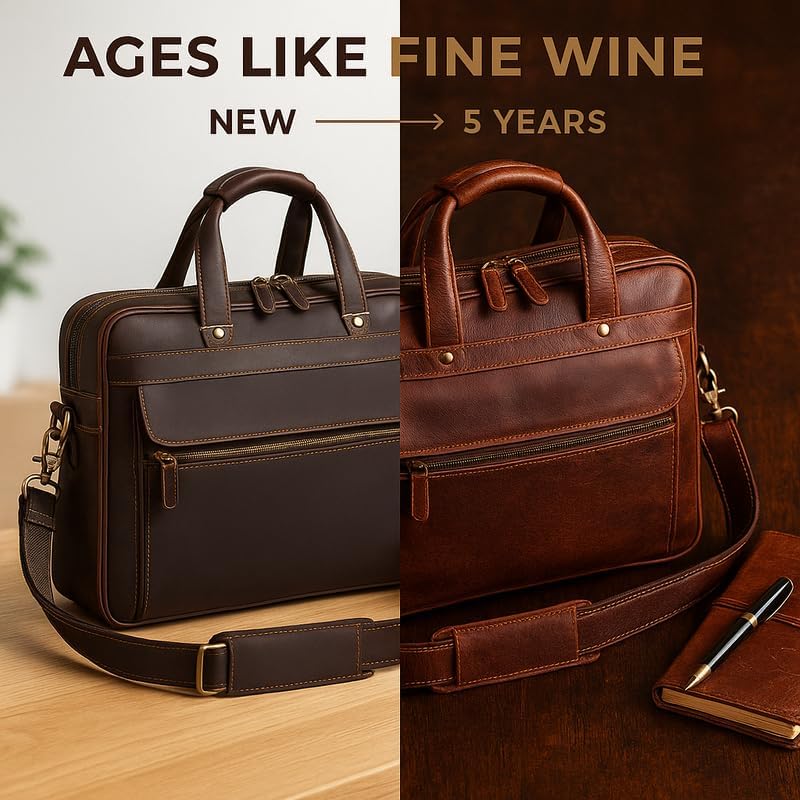 - ERGONOMIC ALL-DAY COMFORT – Confidently carry your essentials without strain. Our engineered padded shoulder strap is specifically designed to evenly distribute the bag's weight, preventing the shoulder and neck fatigue common with other leather briefcases. It’s built for the demanding daily commute and long walks through airport terminals.
