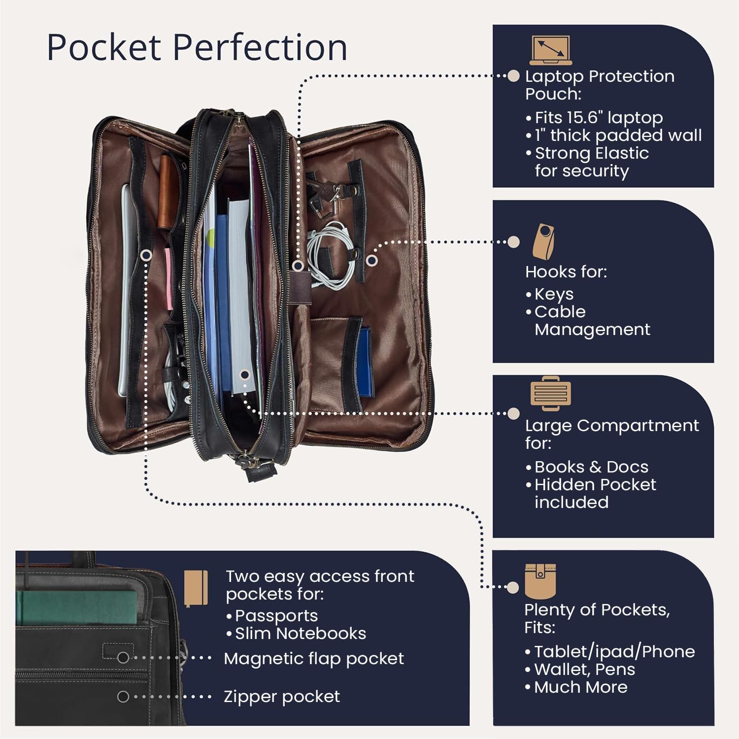 Luxorro Full Grain Leather Briefcase for Men, Top Choice Gifts for Men, Handcrafted Leather Laptop Bag with Multiple Compartments and Brass Hardware, Fits 15.6 Inch Laptop