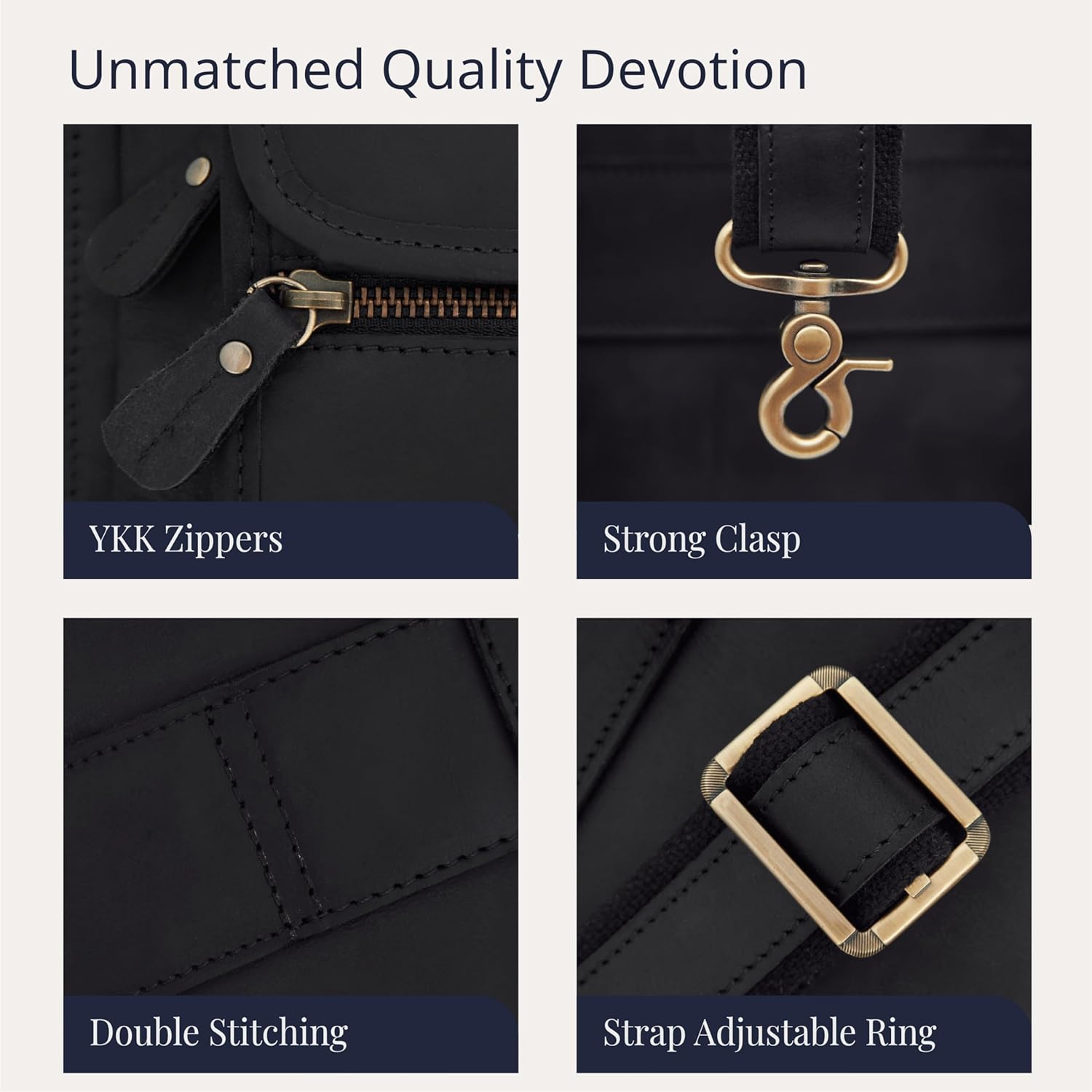 - QUALITY CRAFTSMANSHIP: The commuter briefcase is constructed with fine materials and expert craftsmanship. YKK zippers, solid brass hardware, precision stitching with heavy bonded thread, and a superb internal lining will withstand many years of commuting.