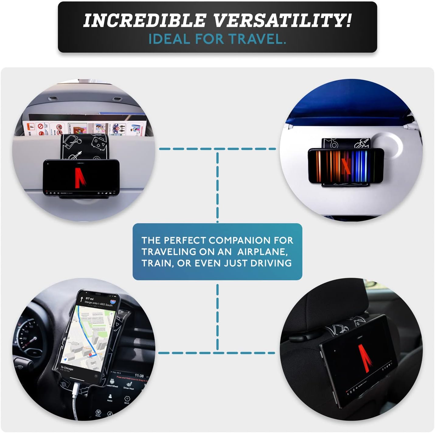 - UNIVERSIAL DESIGN - The Flex Flap's flexible and adjustable design makes it compatible to any device (iPhone, iPad air, Android phone, Android tablet, any mobile phone) with any case. Keep your purse close by hanging it on any chair or table at dinner, making it a fabulous travel accessories for women. Use it to hold up cook books in the kitchen or sheet music while playing an instrument. This cell phone holder has unlimited ways it can be used in your everyday life.