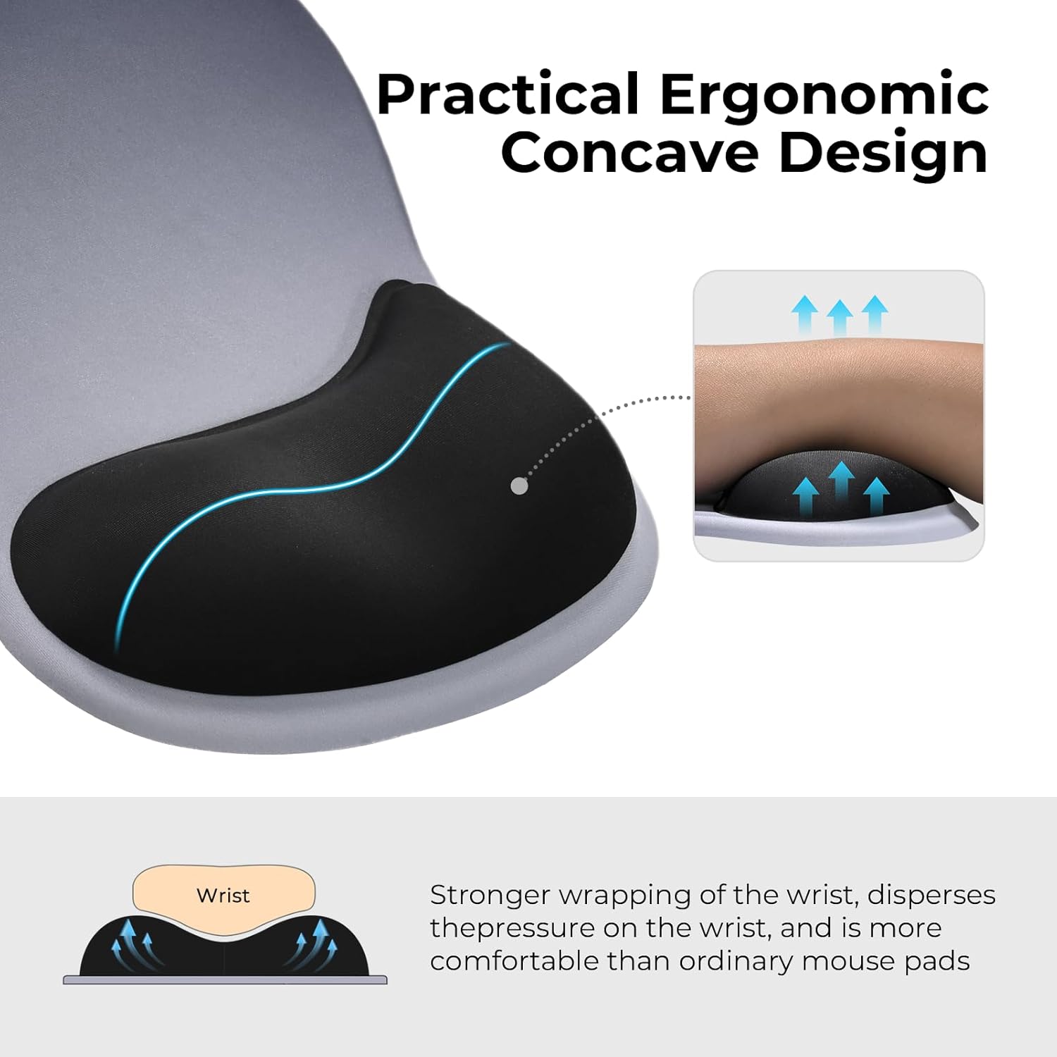 - Practical Ergonomic Concave Design: Our mouse pad measures approximately 10.2 x 7.5 inches(L X W), 1.2inch thick. The enhanced wrist support on our mouse pad ensures a secure and comfortable fit, effectively distributing pressure across the wrist. This design offers superior comfort compared to standard mouse pads, providing you with a more ergonomic and enjoyable computing experience.