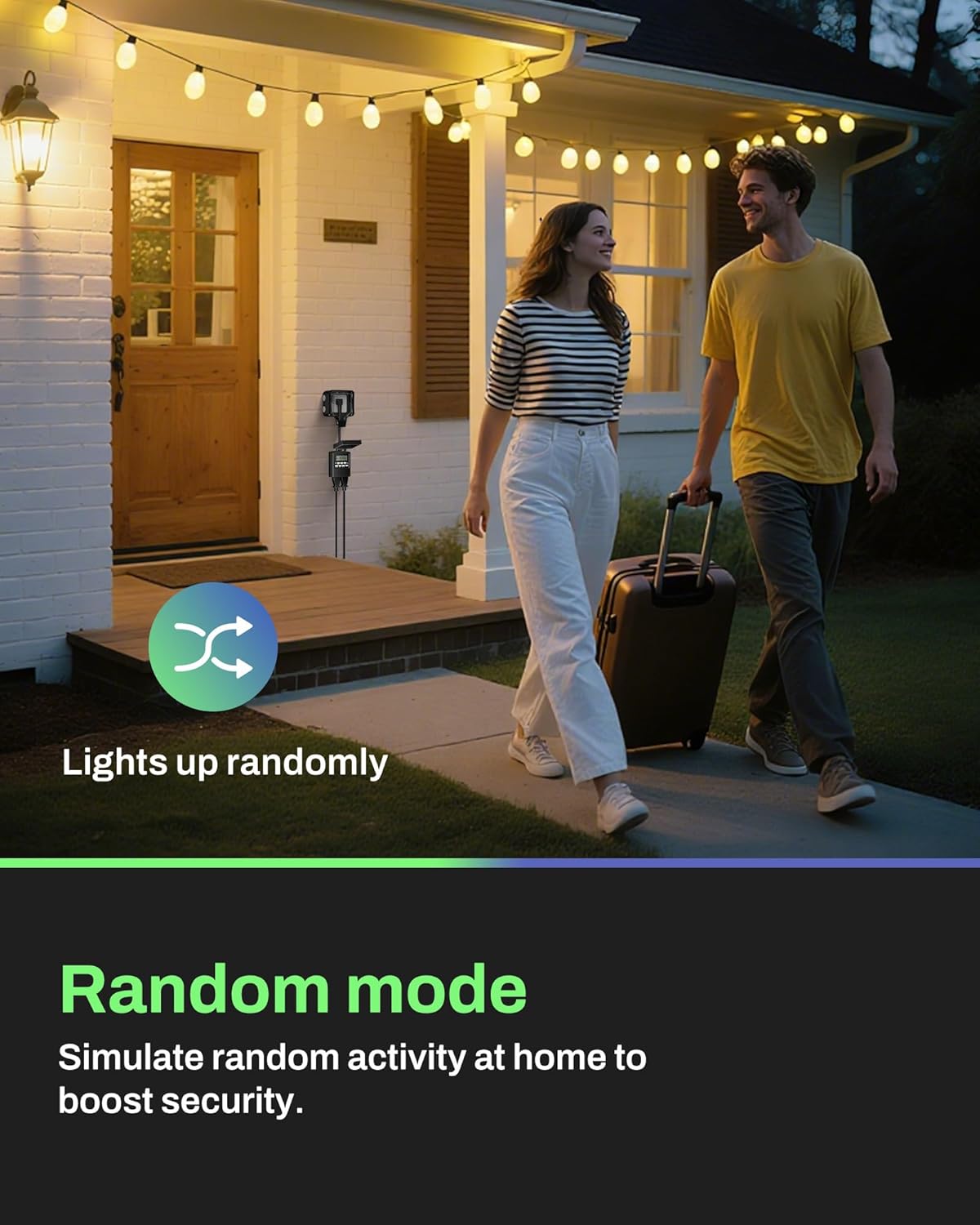 - ✓ PROTECT YOUR HOME: Activate the “Random” Vacation mode to randomize your programmed lights. Make your home look “lived in” even when you’re away.