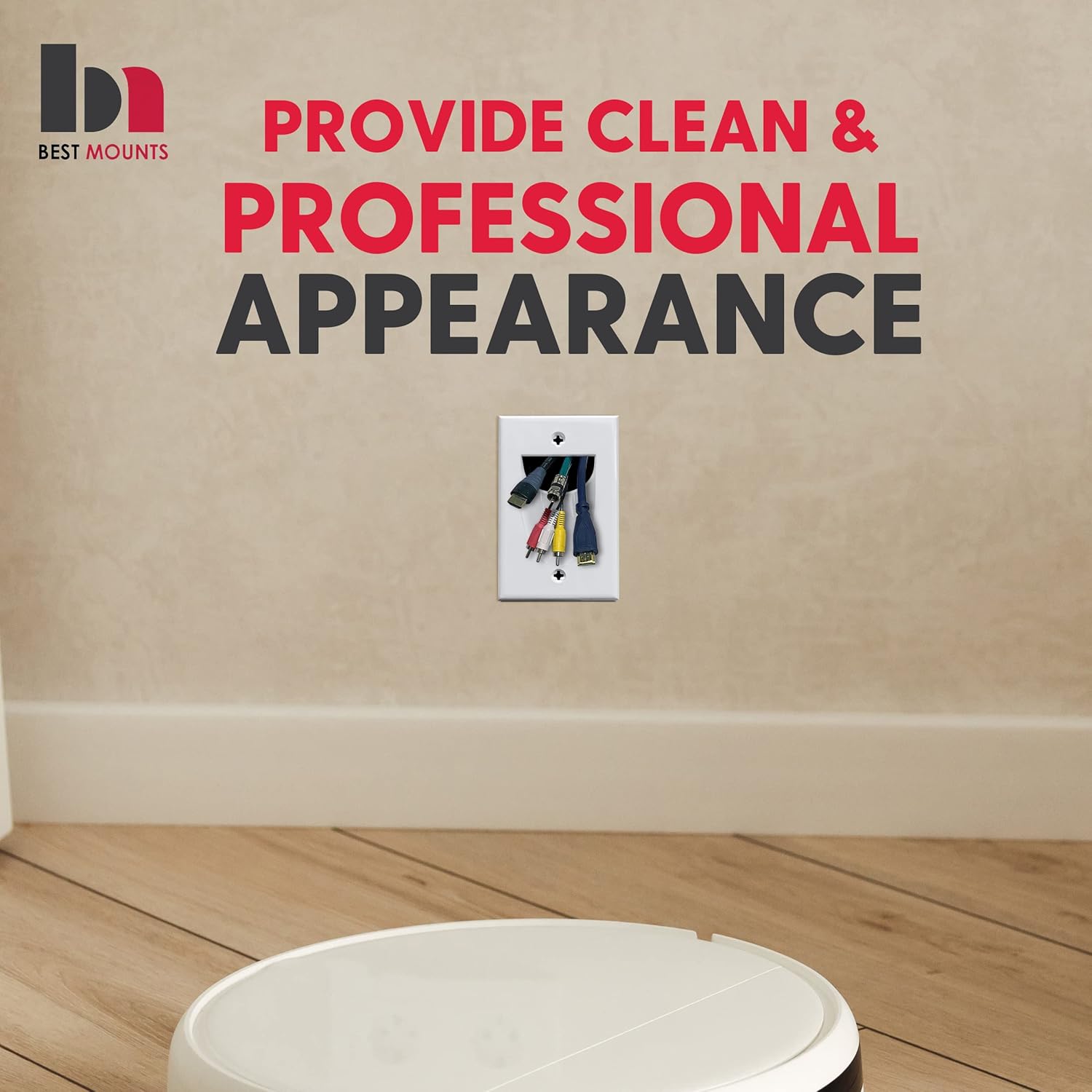 BestMounts - 10 Pack Inner Nose Behind Wall Cable Management TV Cord Hider for Wall Mounted TV - Single Gang Low Voltage Recessed Wall Plates Cable Pass Through for Wires, HDTV, HDMI (White)
