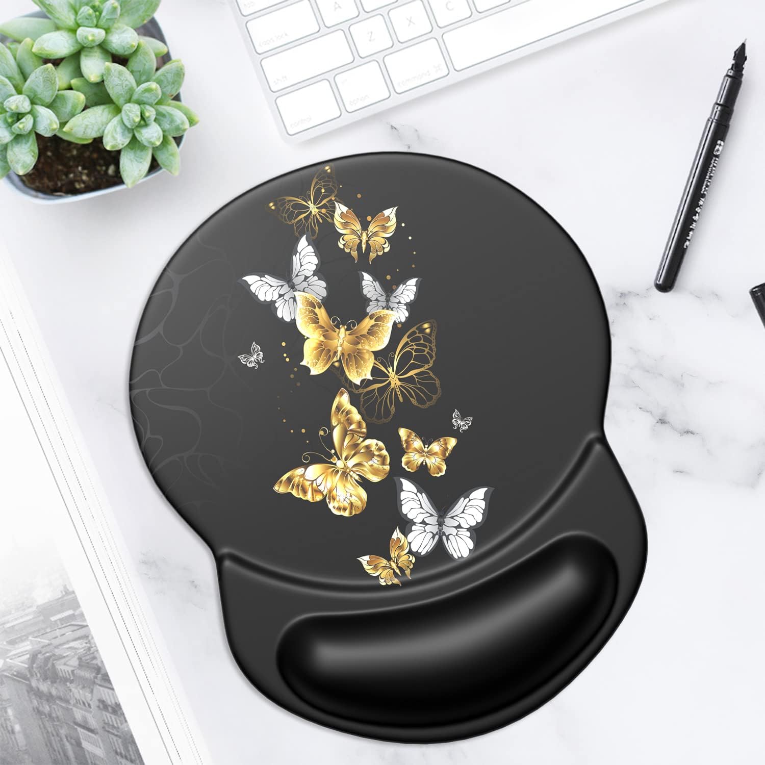 ITNRSIIET Ergonomic Mouse Pad with Gel Wrist Support Small Wrist Rest Smooth Surface Non-Slip PU Base Comfortable Office Supplies Pain Relief, 8.7 x 7.2 inches, Golden Butterfly