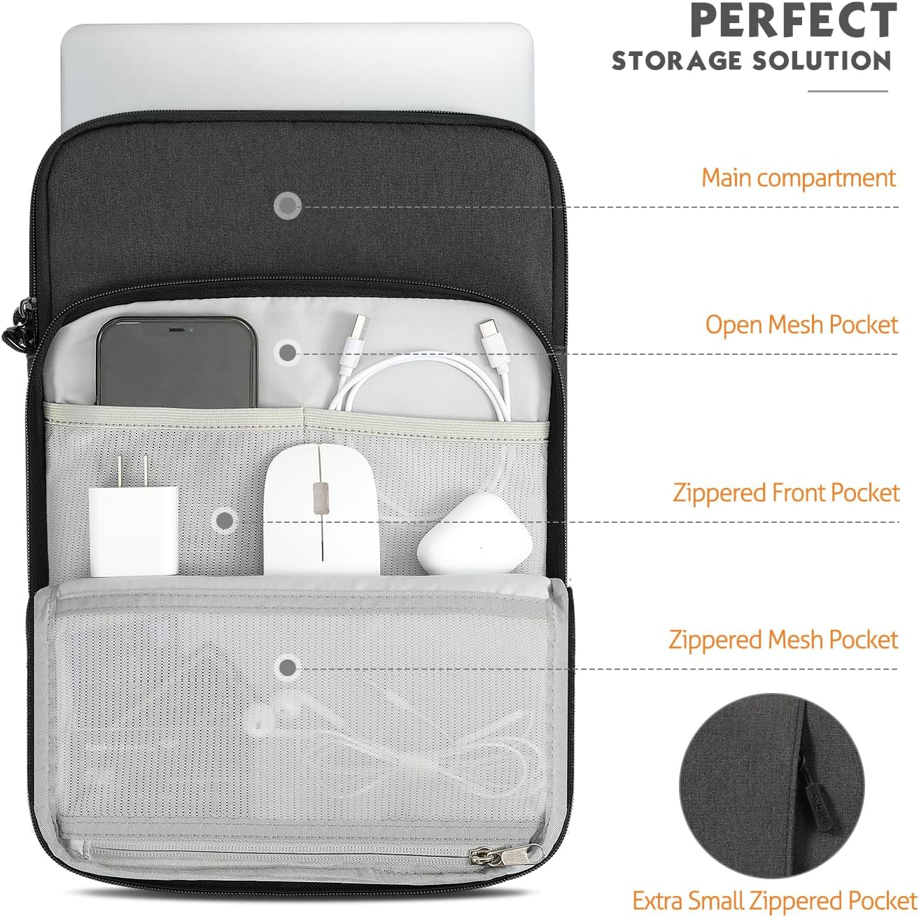 - PREMIUM MATERIAL: The pouch bag is made of high-quality polyester external, soft inner lining and thick sponge padding, which is not only splash-proof but also can protect your laptop from scratches and shocks.