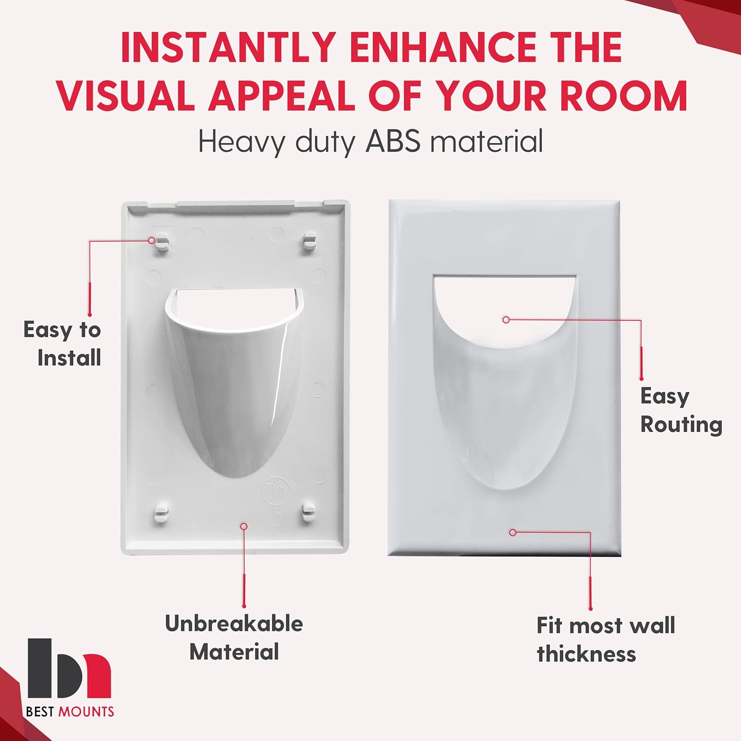 - EASY INSTALL - Simply trace the inside of the bracket onto your wall, cut it out, and install the bracket and cable plate. Cable plate can be installed with opening facing up or down