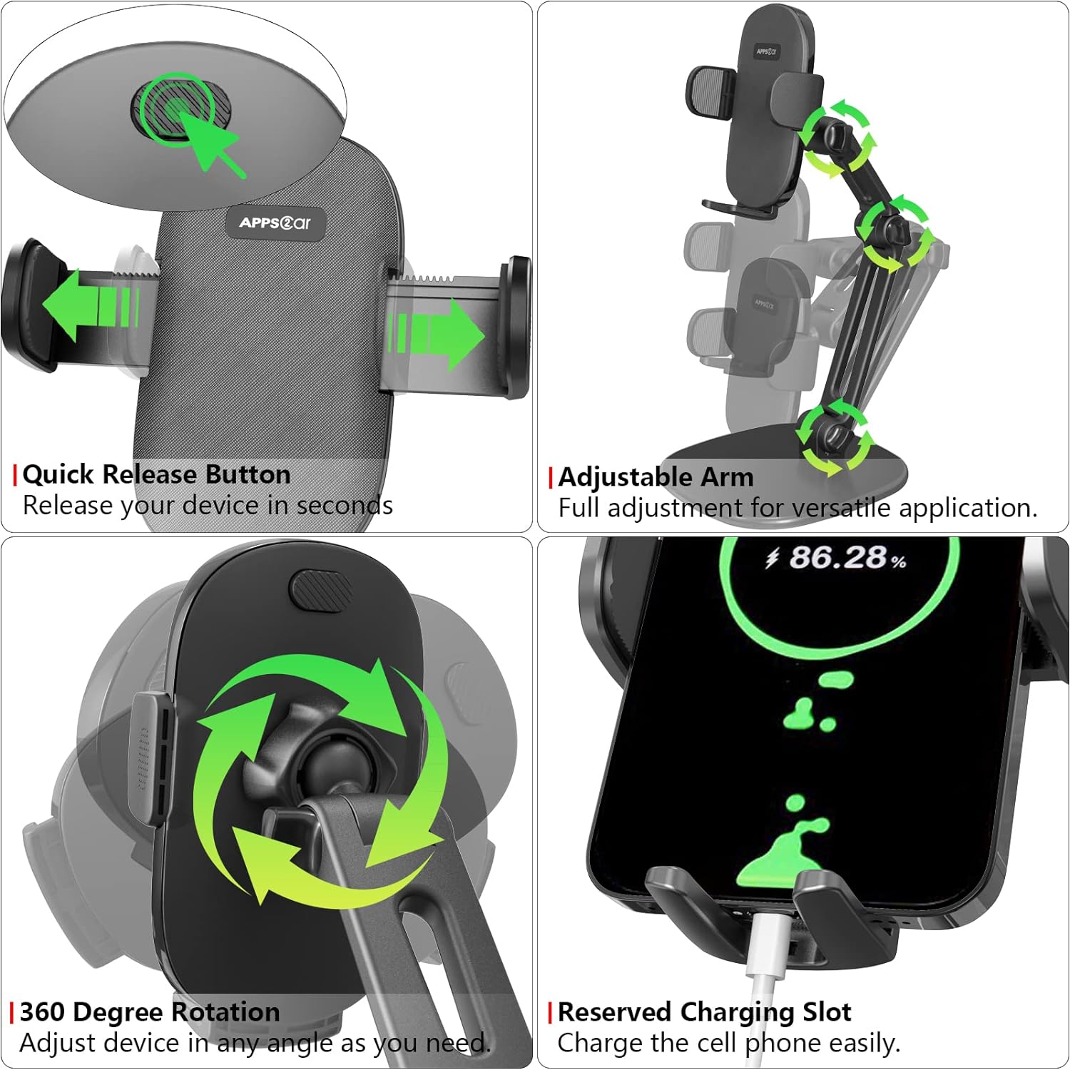- Quick One-Hand Operation: Simply press the button on the back of the cradle, and the arms can be quickly opened, press the double side arms to lock your phone 100% tightly and quickly