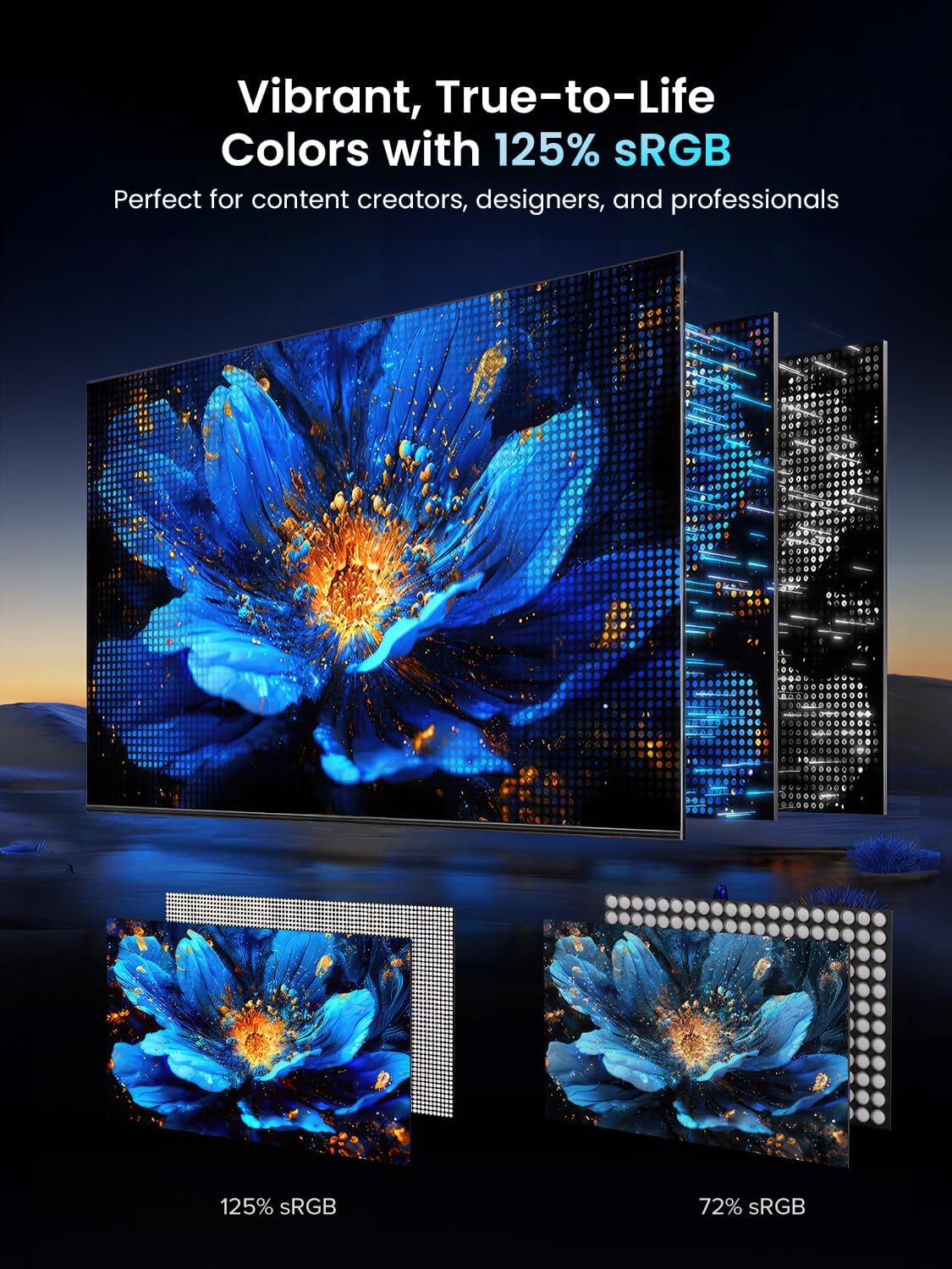 - FHD IMAGE QUALITY: UPERFECT freestanding portable monitor for laptop not only owns 18.5 inches big screen, but also has 350 nits brightness, 100% sRGB and 72% NTSC color gamut; Which can deliver you clear, bright, crisp image, see detail and colorful picture