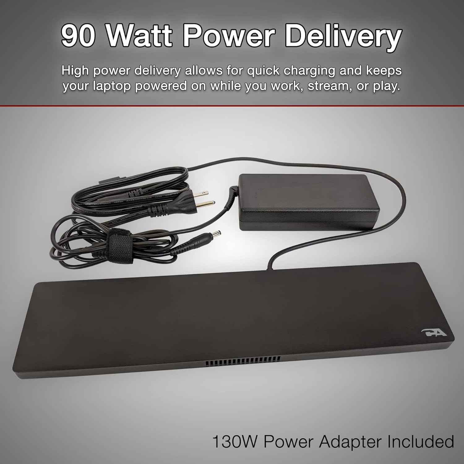 CA Essential Docking Station (DS-2000) – USB C Docking Station with 135W AC Power Adapter (90W Power Delivery), Active Laptop Cooling, Dual Monitor Displays in 4k, 4 USB Type A Ports, Ethernet Port