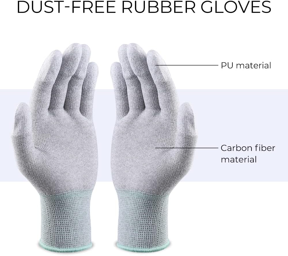 - 💙【PU Antistatic Gloves】Strengthen the grip, the fingers are coated with PU coating, leaving no fingerprints; carbon fiber material can effectively prevent static electricity.