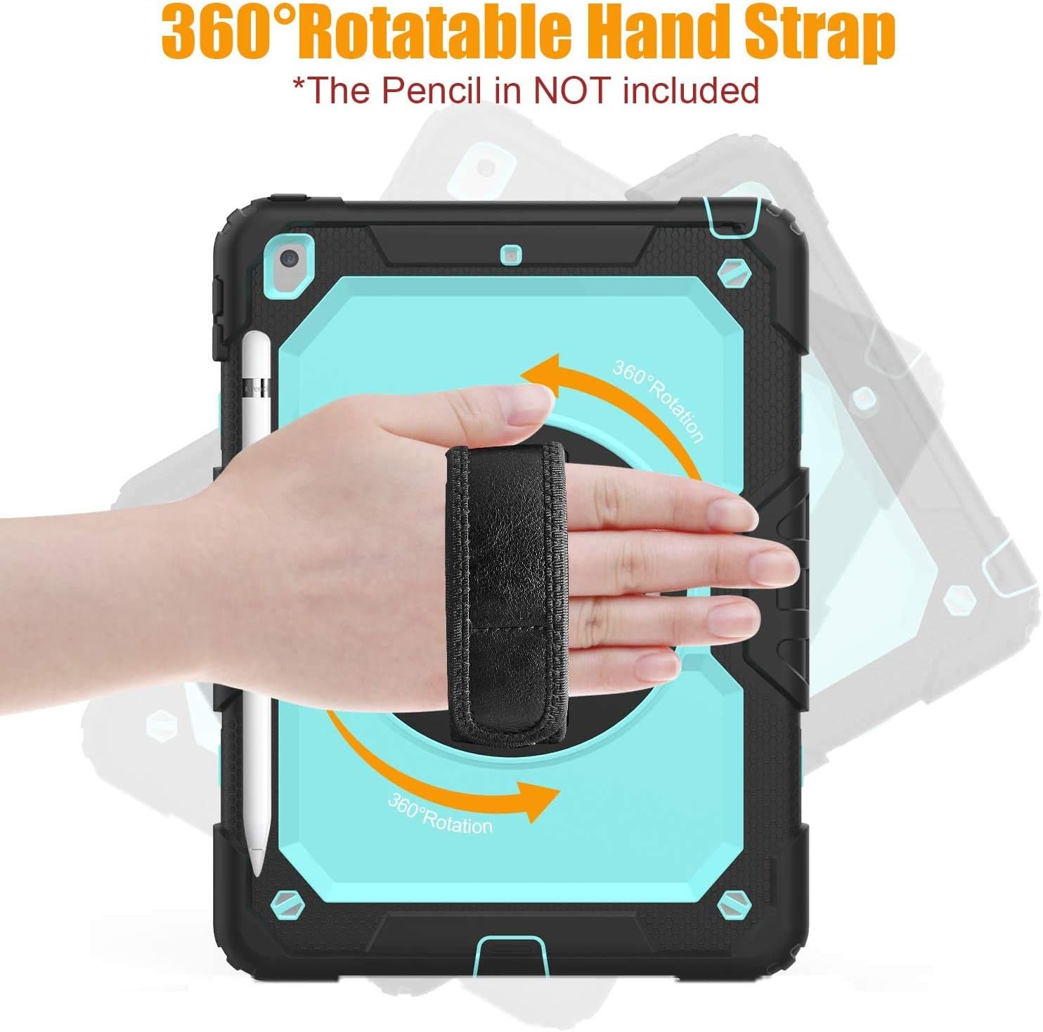 - 360° Rotating Stand & Hand Strap: Rotatable kickstand allows multi-angle viewing, pretty easy for movie watching and kids boys girls toddlers learning on the go. Soft rotating handle strap prevents falling of iPad 9th generation, featuring convenient use for teachers, students, waiters, doctors, nurses and conference presenters