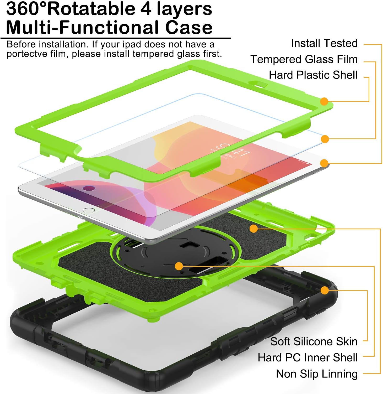 - Removable Shoulder Strap: Attach the strap to any two corner holes of this iPad 10.2 Case and it will allow you to display your iPad behind car head rest for easy personal viewing or between two seats for shared viewing. It is also a unique design for kids walking/travelling, architecture designers, real estate agents, construction workers as well as outdoor labor