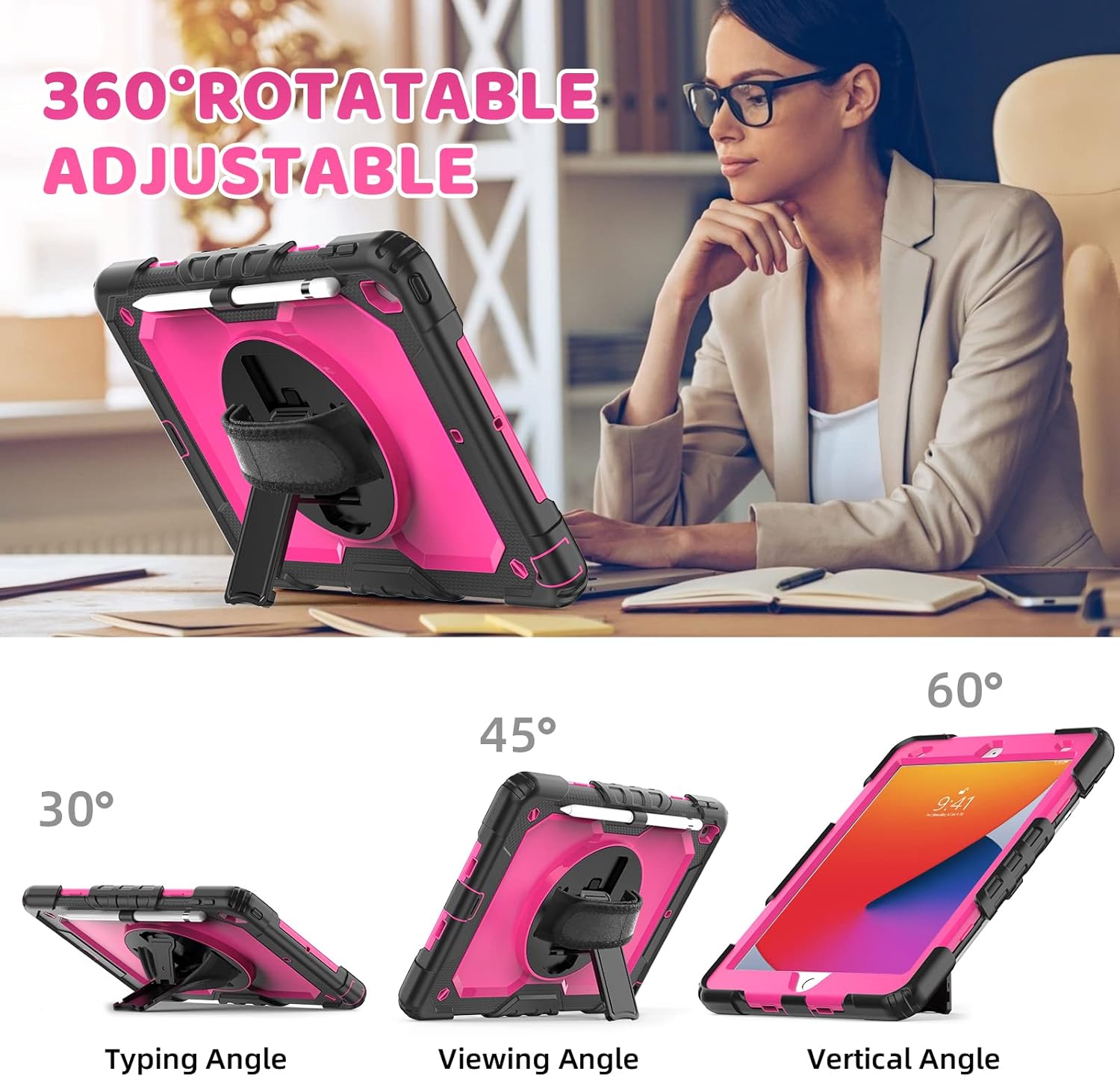 - 360° Rotating Stand & Hand Strap: Rotatable kickstand allows multi-angle viewing, pretty easy for movie watching and kids boys girls toddlers learning on the go. Soft rotating handle strap prevents falling of iPad 9th generation, featuring convenient use for teachers, students, waiters, doctors, nurses and conference presenters