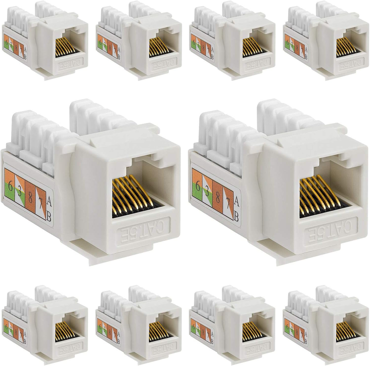 - PACKAGE INCLUDE: 10 x Cmple Cat5e Ethernet Connector Keystone Jack, Ethernet Cable Wall Jack - White