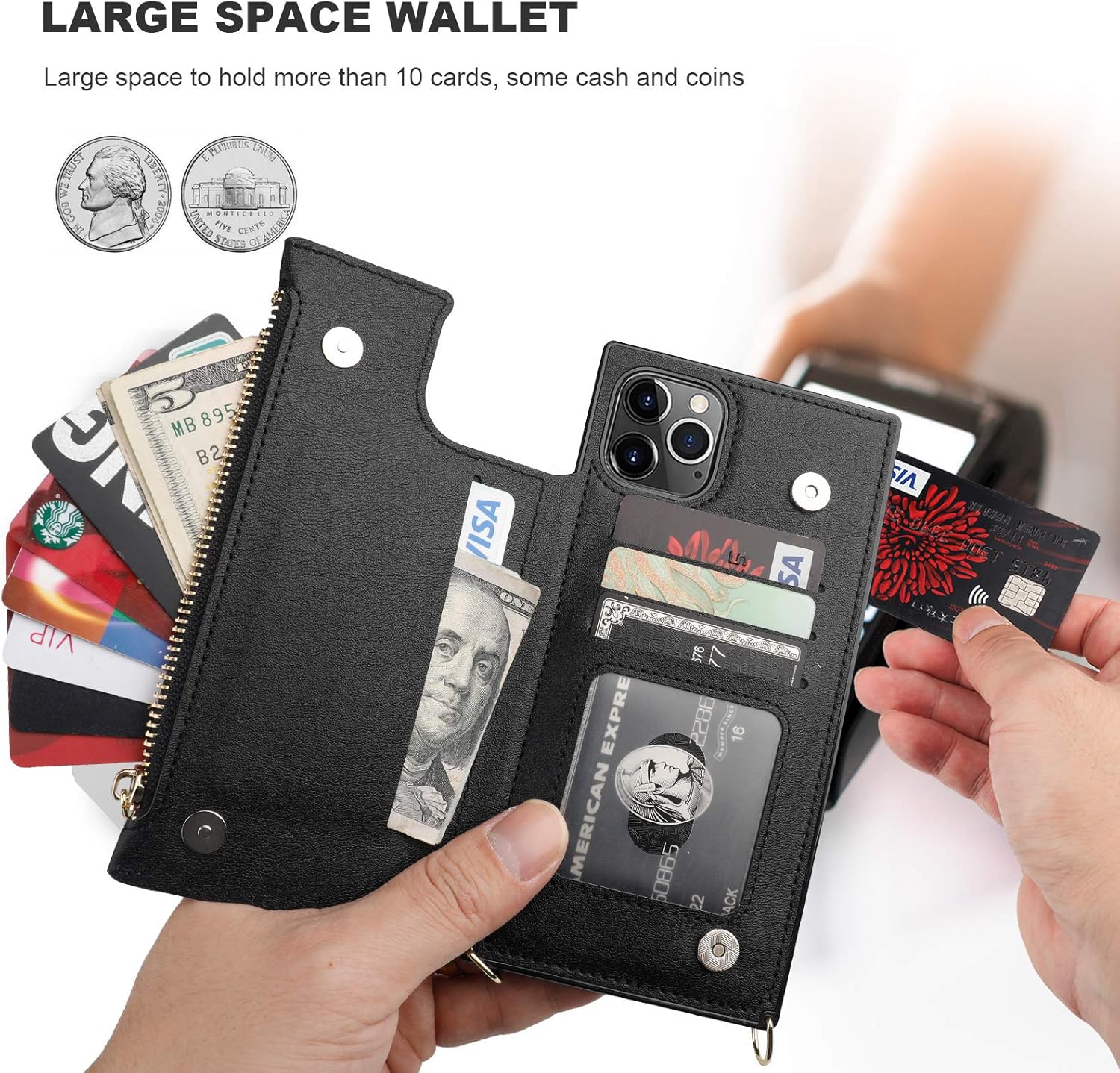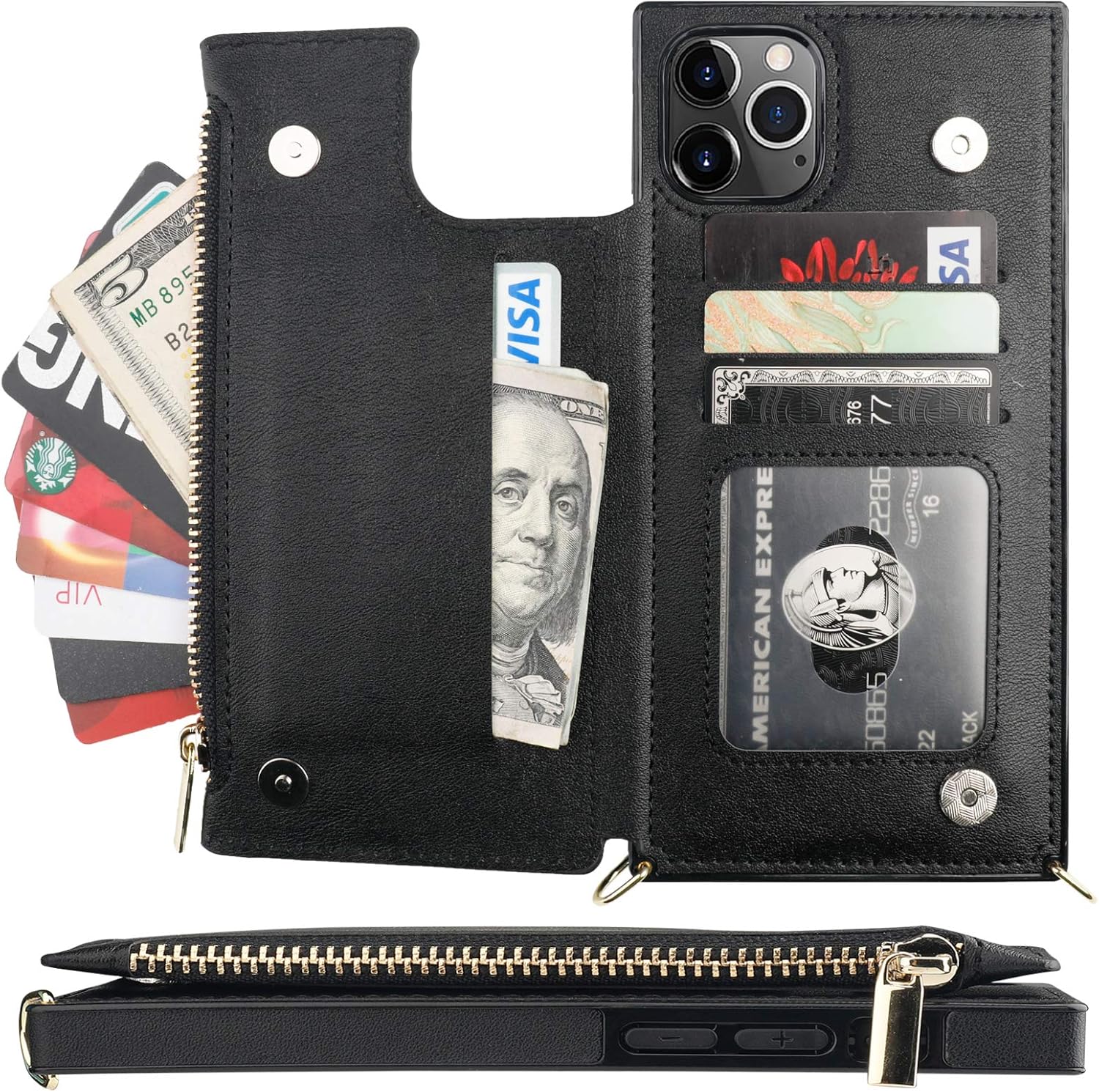 Bocasal Crossbody Wallet Case for iPhone 11 Pro Max with Card Holder,Zipper Card Slot Protector Shockproof Purse Cover with Removable Cross Body Strap 6.5 Inch(Black)