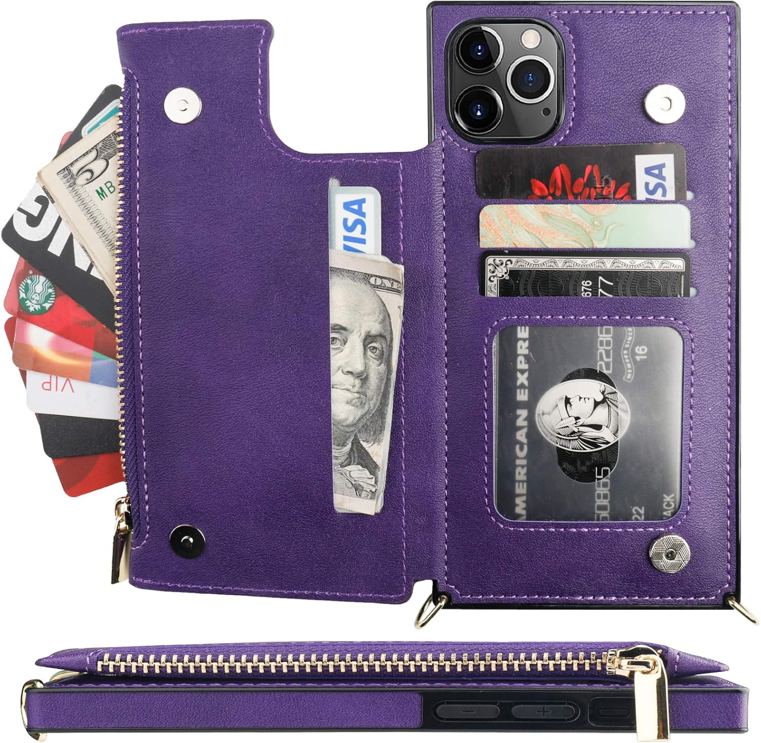 Bocasal Crossbody Wallet Case for iPhone 11 Pro Max with Card Holder,Zipper Card Slot Protector Shockproof Purse Cover with Removable Cross Body Strap 6.5 Inch(Purple)