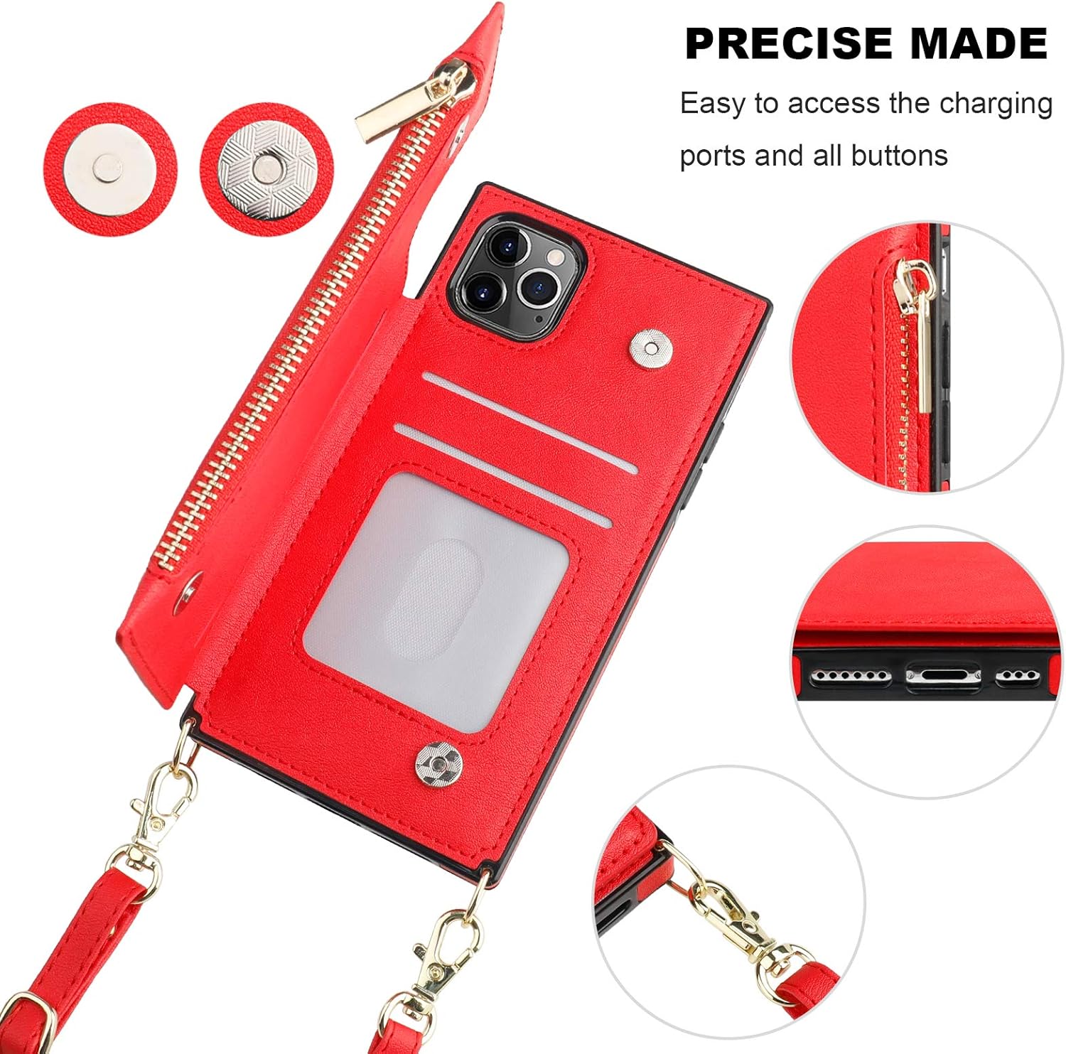Bocasal Crossbody Wallet Case for iPhone 11 Pro with Card Holder,Zipper Card Slot Protector Shockproof Purse Cover with Removable Cross Body Strap 5.8 Inch(Red)
