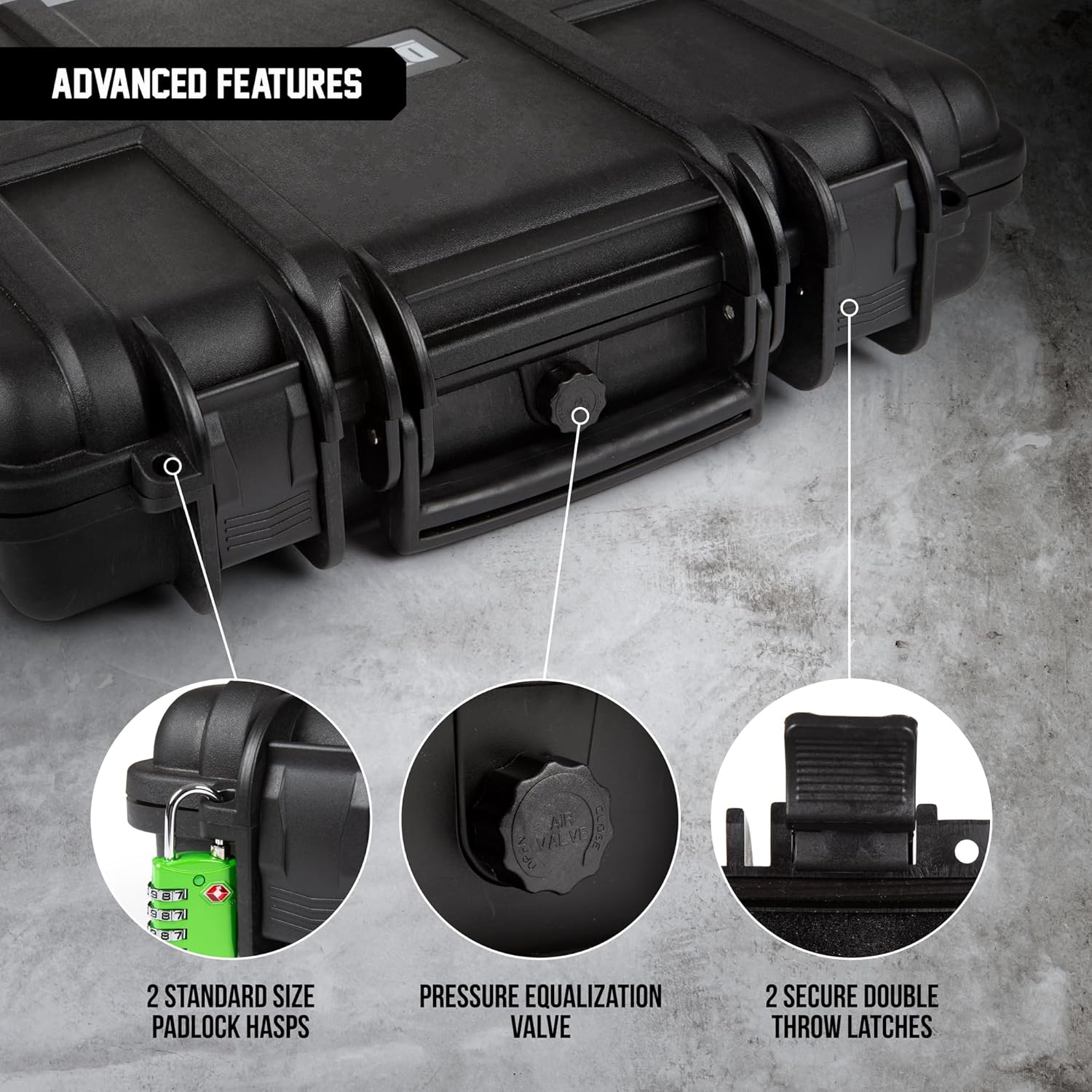 - WEATHER RESISTANT - Engineered to keep your gear safe in harsh environments. IP-rated dust and splashproof with water submersion protection up to 1 meter. Closed-cell foam lining offers an extra barrier against moisture and impact ensuring your gear remains clean and dry.