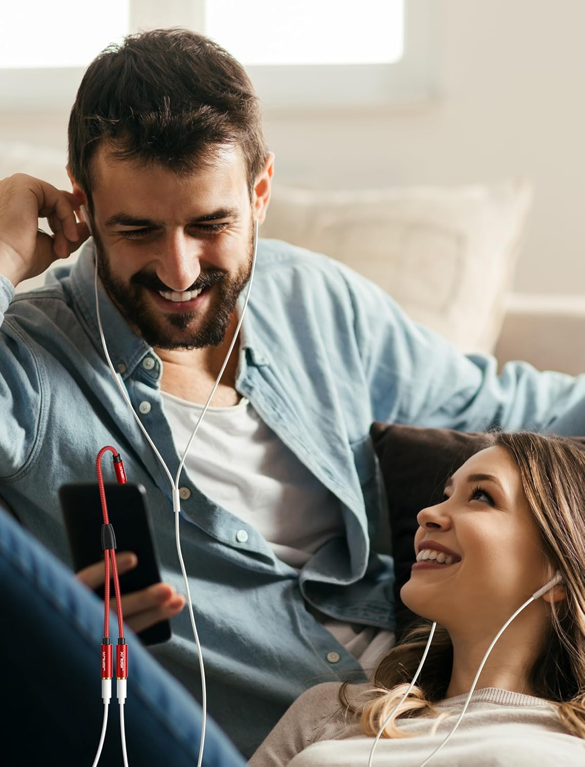 - 【Excellent Connection】This 3.5mm jack headphone splitter can transfer audio from your Smartphone, MP3 players, CD players, laptops, tablets to 2 output devices including headphones, speakers and more.