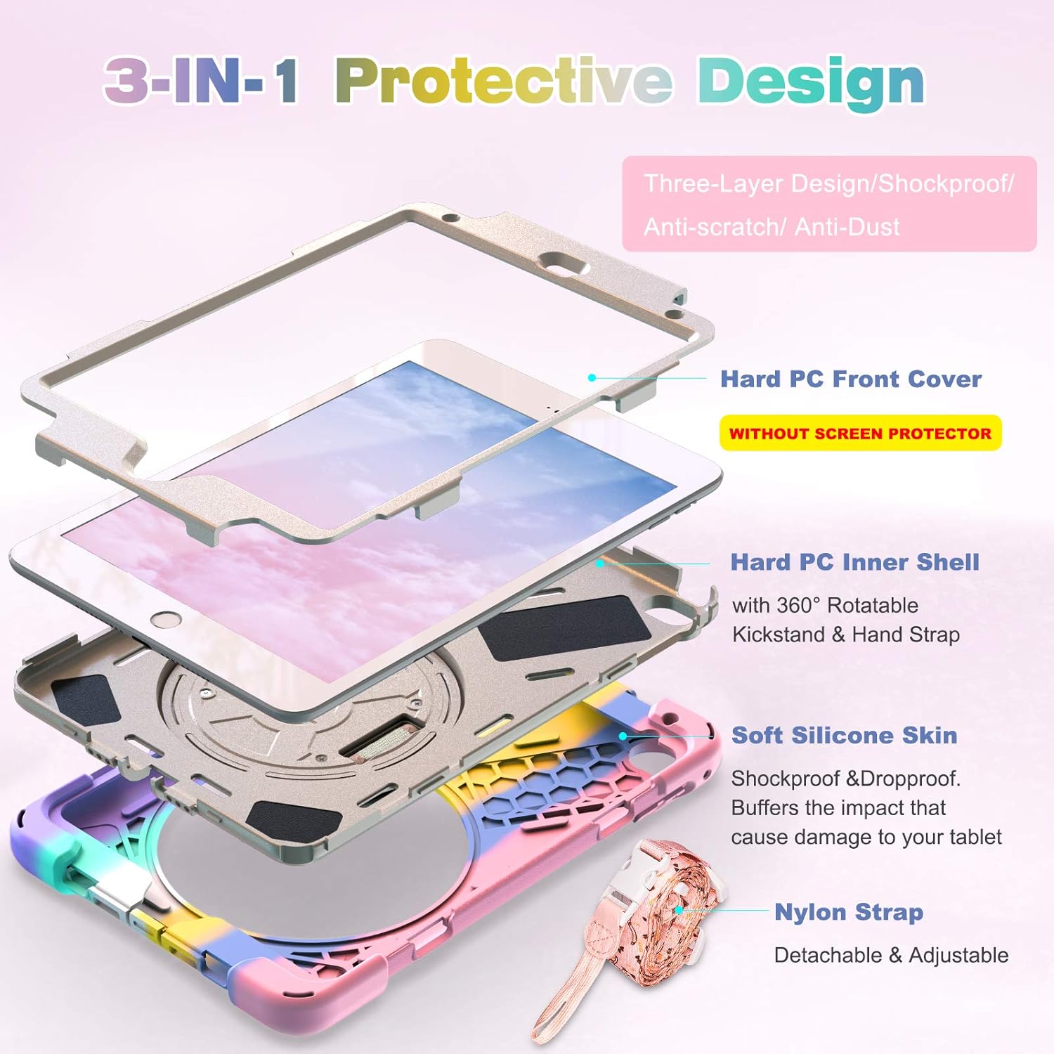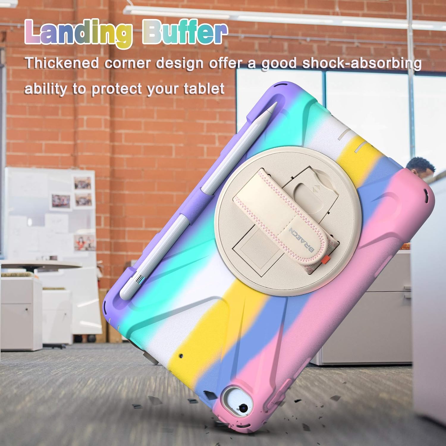 - Adjustable shoulder strap: By attaching strap to any two corners and adjusting to a comfortable length, ipad cover tablet can be carried in a landscape/portrait modes more securely during hiking, traveling or other outdoor activities. Also, strap allows to hang up your tablet behind car seat for entertainment for kids.