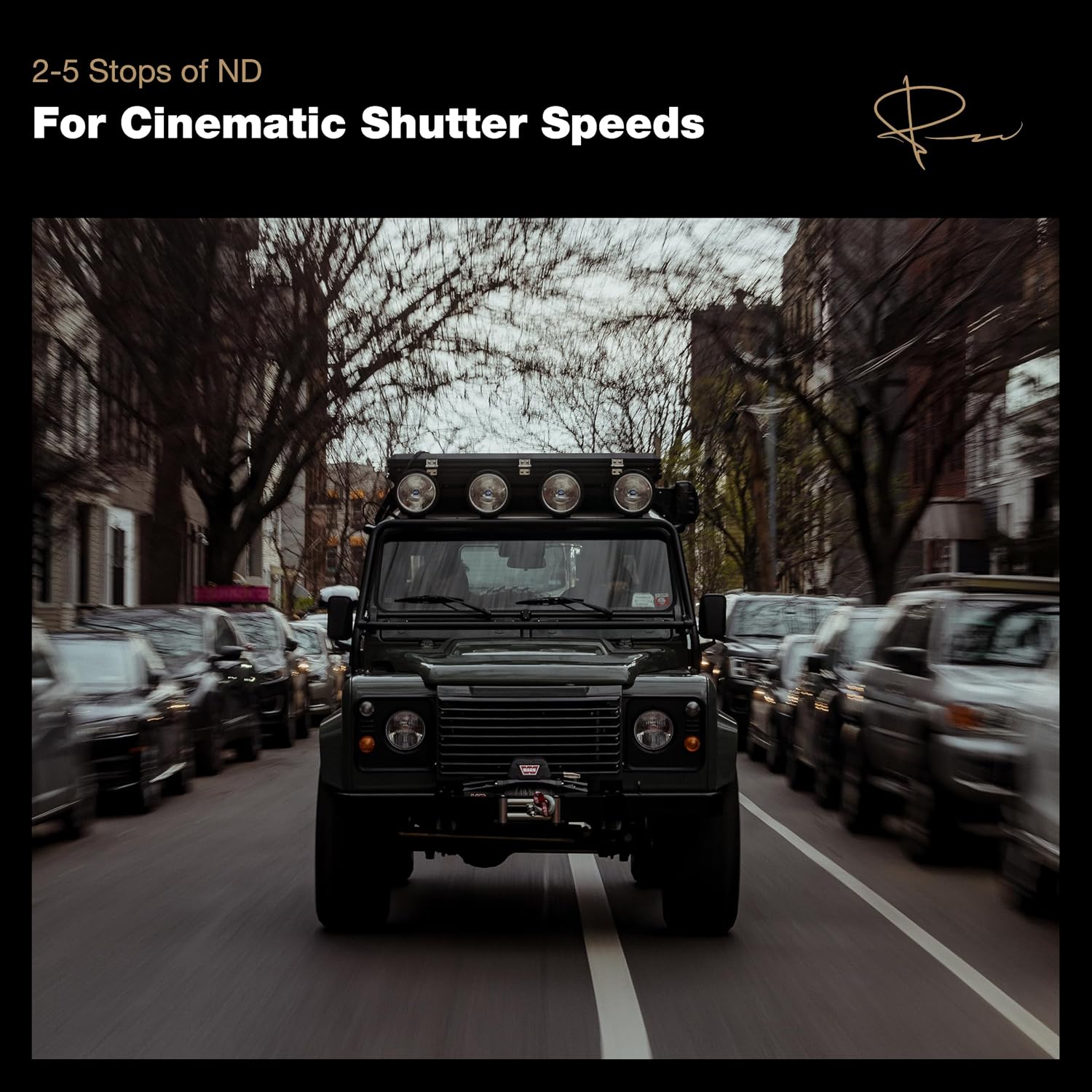 - 𝗣𝗥𝗘𝗖𝗜𝗦𝗜𝗢𝗡 𝗘𝗫𝗣𝗢𝗦𝗨𝗥𝗘 𝗖𝗢𝗡𝗧𝗥𝗢𝗟 – Features precise haptic feedback with hard stops from 2 to 5 stops (ND4 to ND32) or 6 to 9 stops (ND64-ND512), letting you adjust exposure on the fly in bright outdoor shooting conditions.