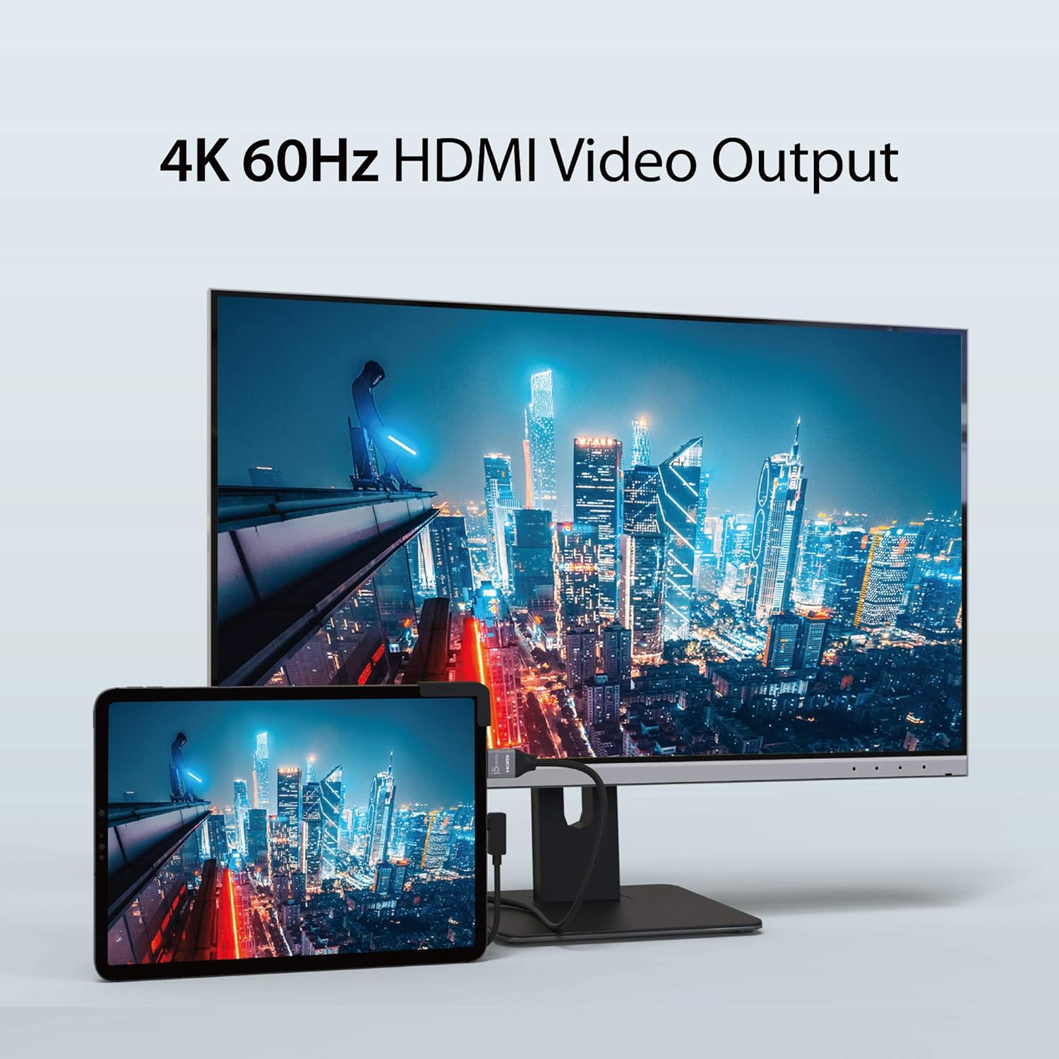 j5create iPad Pro USB C Hub- 6-in-1 Travel Dock for iPad Pro 12.9”/11”, with 4K@60Hz HDMI, USB C PD Charging 100W & Data, USB A 3.1, SD and microSD Card Reader, 3.5mm Headphone Jack (JCD612)