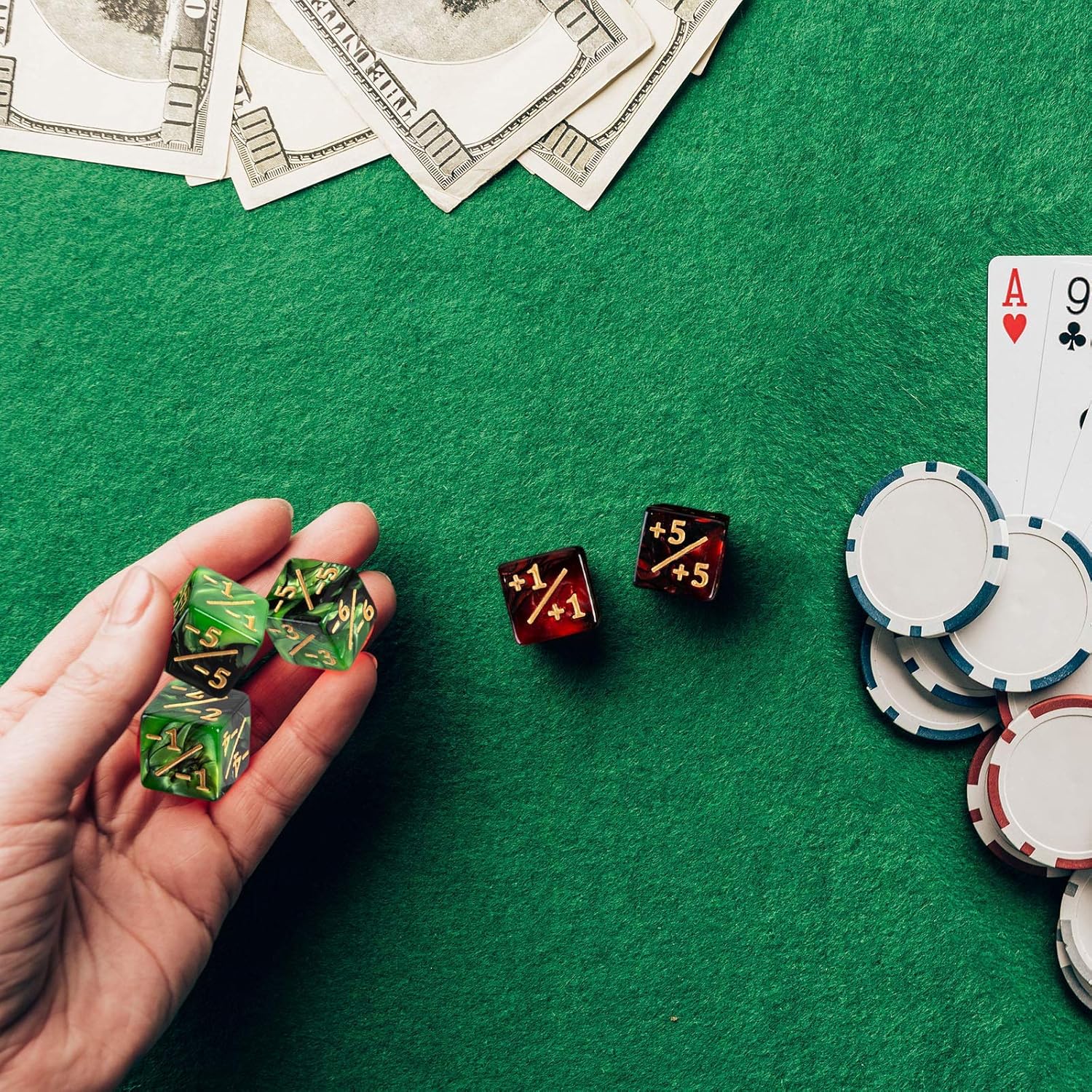 - What You Will Get: Total 48 pieces dice counters with 2 flannelette bags. Includes 24 pieces +1~+6 ruby dice counters & 24 pieces -1~-6 emerald dice counters. They are 0.63 inch/ 16 mm regular D6 dice.