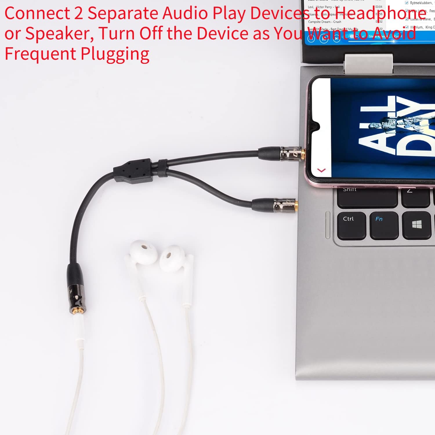 - Plug and Play: Connect 2 separate audio play devices to headphone or speaker, turn off 1 device as needed to avoid frequent plugging; Or connect 1 audio play device to 2 headphones or speakers to share your favorite music anytime anywhere
