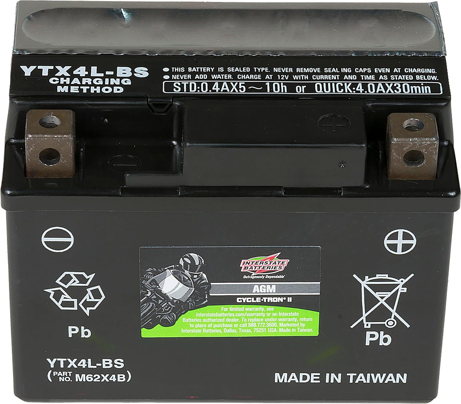 Interstate Batteries YTX4L-BS 12V 3Ah Powersports Battery 50CCA AGM Rechargeable Replacement for BRP, Honda, KTM Motorcycles, Scooters, ATVs (CYTX4L-BS/CITX4L-BS)