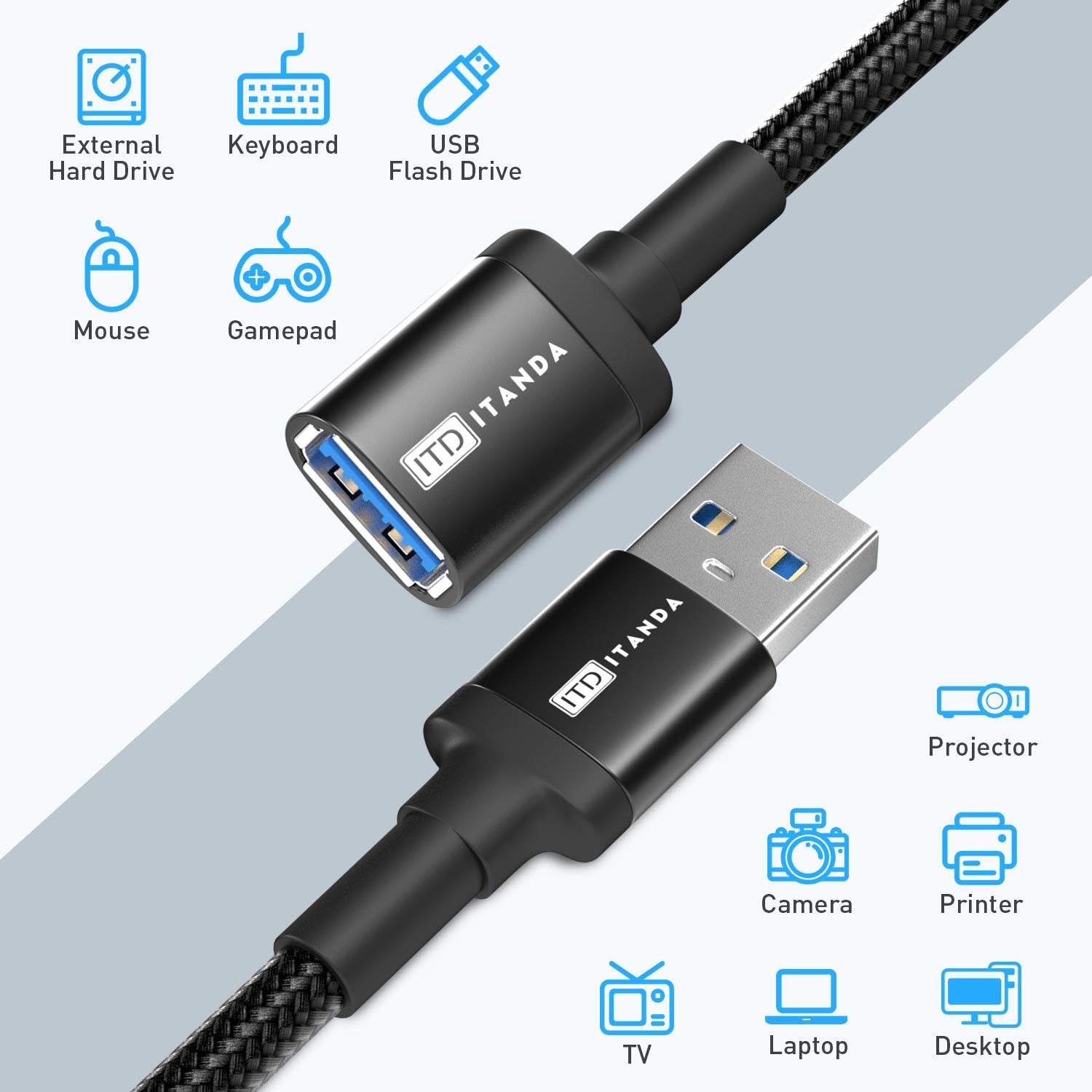 ITD ITANDA 10FT USB Extension Cable USB 3.0 Extension Cord Type A Male to Female 5Gbps Data Transfer for Keyboard, Mouse, PlayStation, Xbox, Flash Drive, Printer, Camera and More, Black