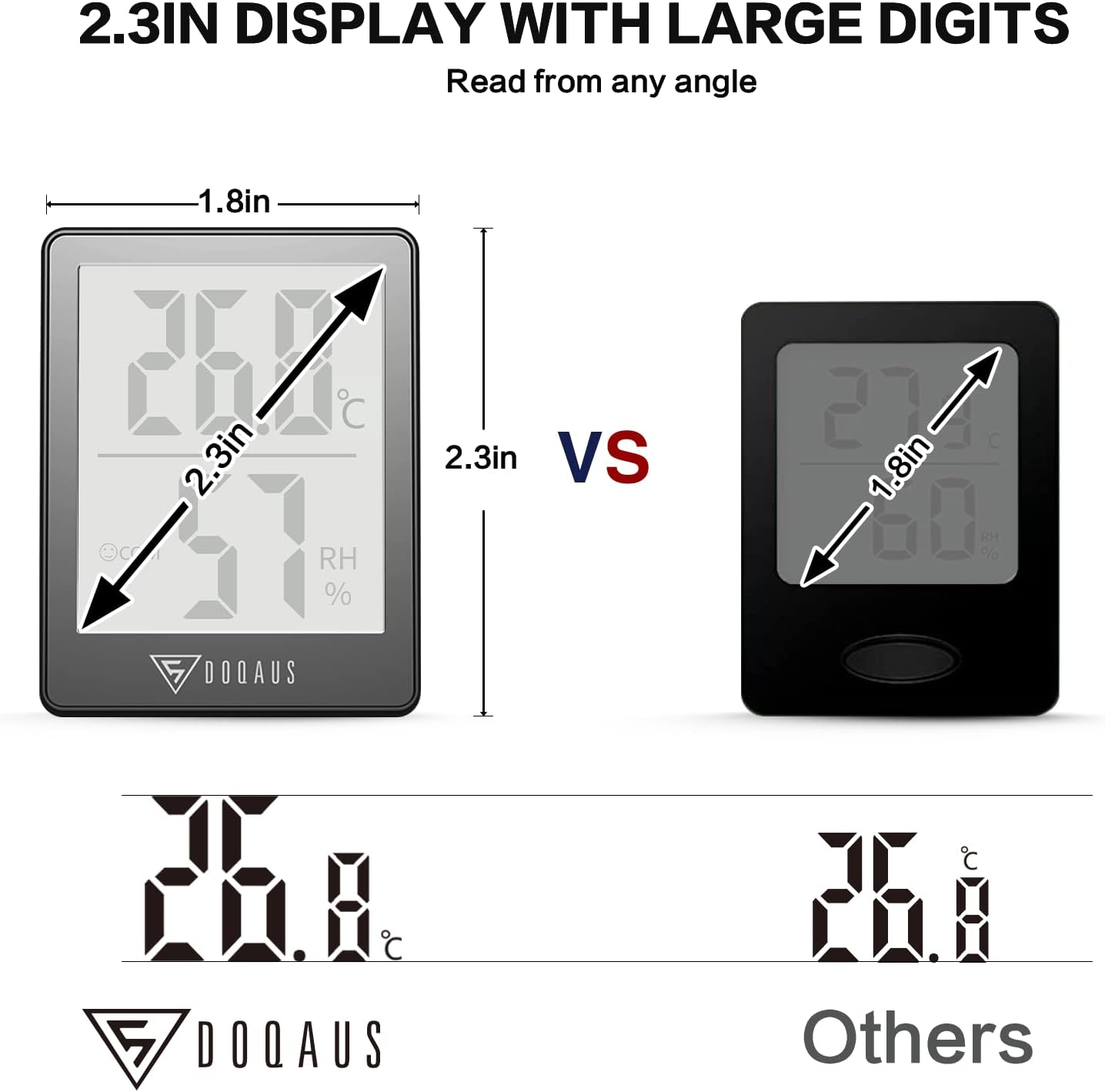 - 【Multiple Mounting Options】 The thermometer for home has 3 mounting options - table stand, magnet attaching, and wall hanging. You can easily place this humidistat anywhere. Package includes 3 x DOQAUS temp humidity gauge, 3 original CR2032 batteries, 1 x user manual