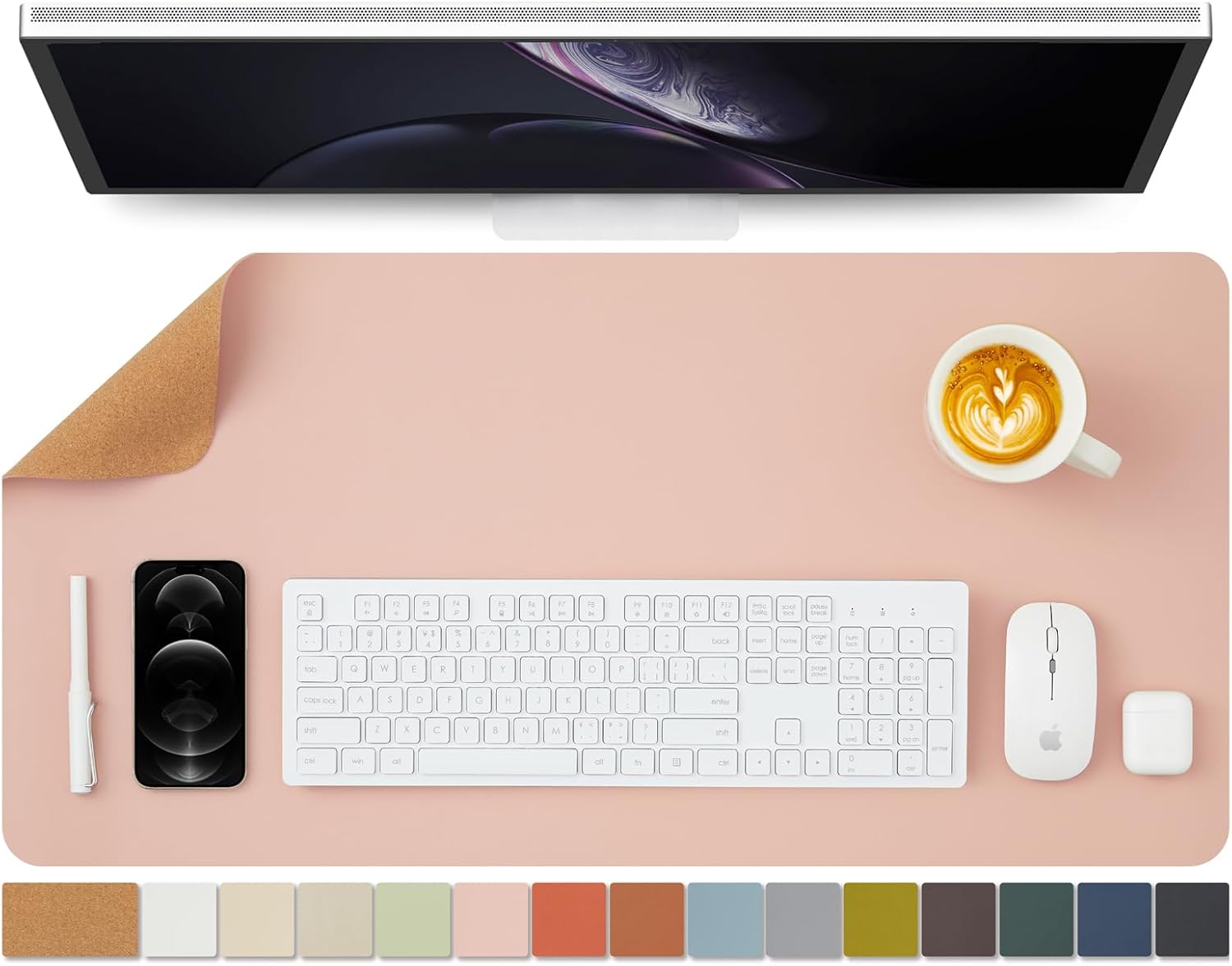 Cork Desk Mat - Dual-Sided Desk Pad for Office and Home - Desk Organization and Accessories - Ideal for Large Mouse Pad and Desk Mats on Top of Desks(Pink,31.5"x 15.7")
