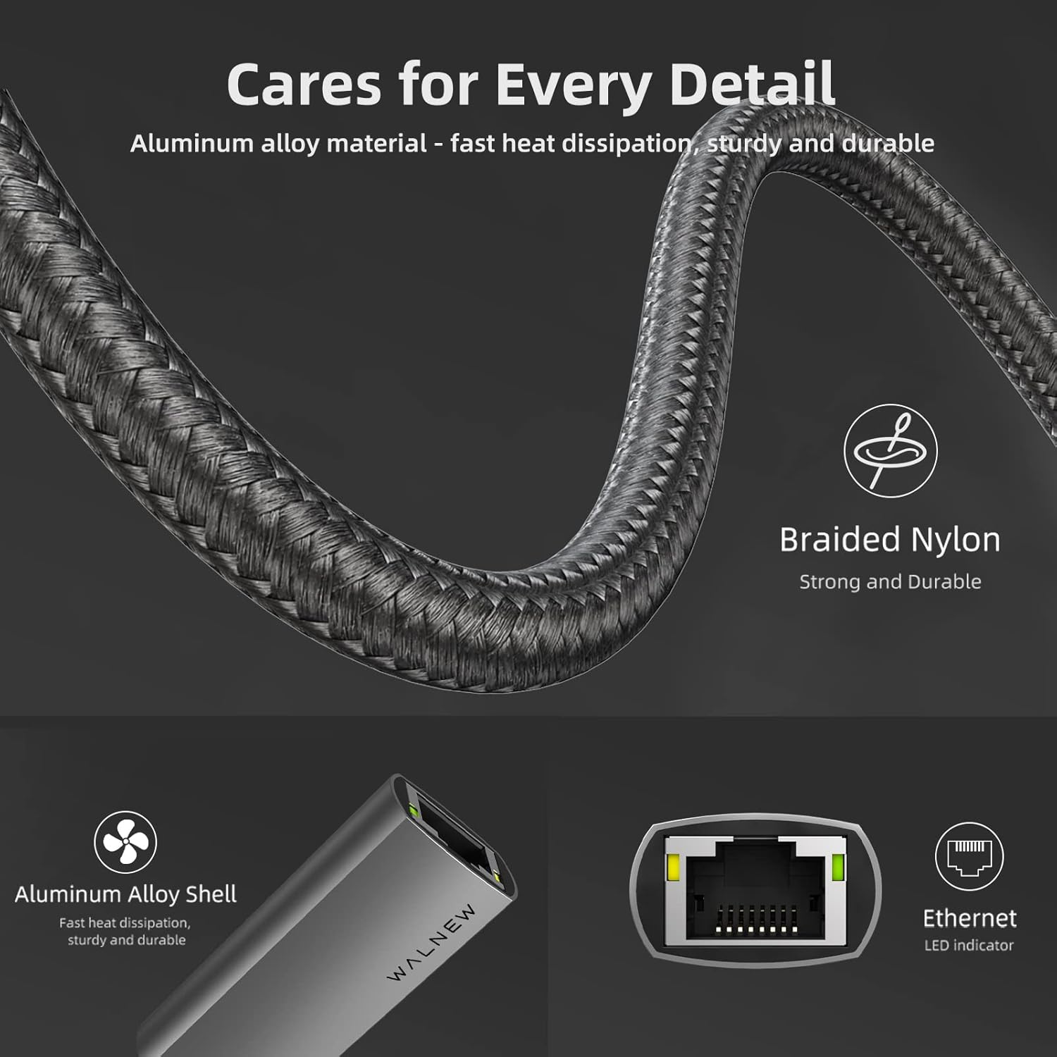 - 【Stylish USB C Internet Ethernet Converter】Made of premium anti-fingerprints aluminum shell and braided nylon, this type-c Network Adapter is lightweight and portable to use at home/office/travelling