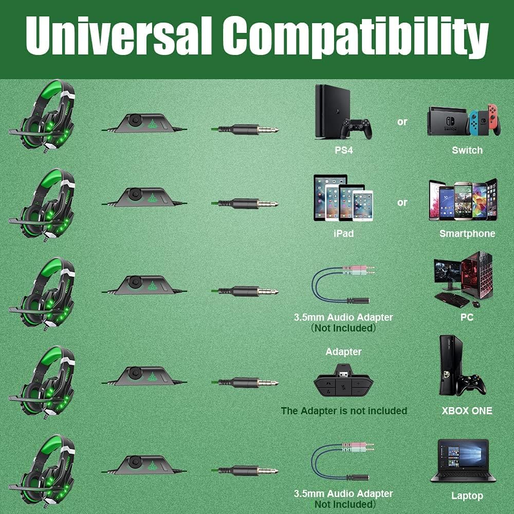 BENGOO G9000 Stereo Gaming Headset for PS4 PC Xbox One PS5 Controller, Noise Cancelling Over Ear Headphones with Mic, LED Light, Bass Surround, Soft Memory Earmuffs for Laptop Mac - Green