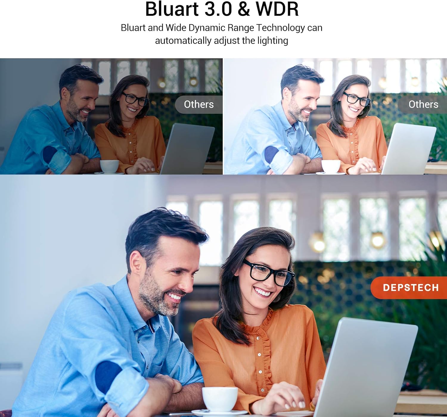 - 【Solid 4K Streaming & Full HD Video】High-definition 4K 8-megapixel PC external webcam, equipped with Sony sensor 1/3”CMOS features up to a 3840*2160 resolution at 30fps. Our DEPSTECH PC web camera supports full HD video calling over the internet without any delay that makes you feel as if you're conversing in person face to face. DEPSTECH 4K webcam can be also used as a gift for your family or friends.