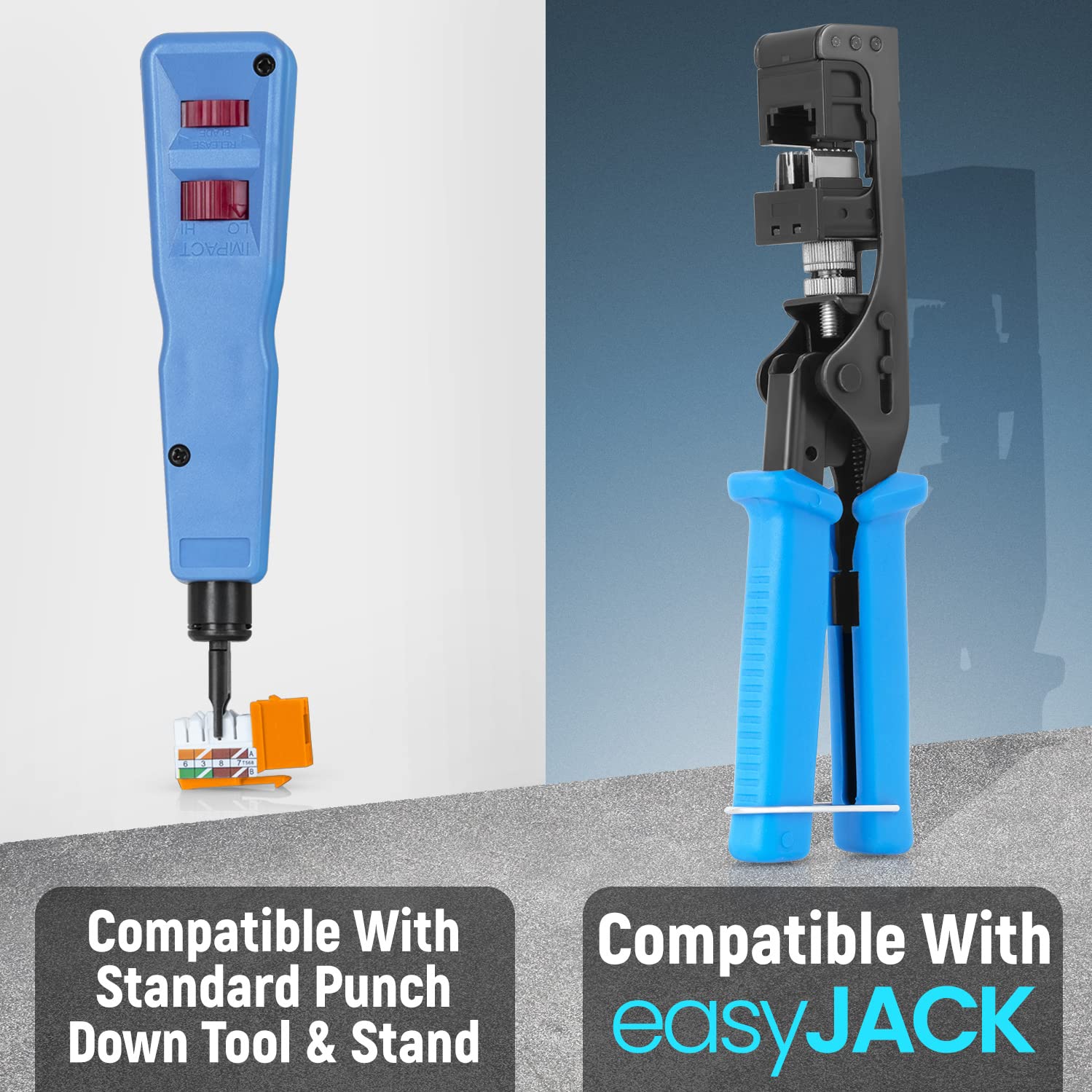 - Compatibility - compatible with our 90 degree angled speed termination tool - easyJACK (B094WB91H3). These cat 6a jacks keystone rj45 can also work in conjunction with a standard punch down tool and punch down stand for convenience.