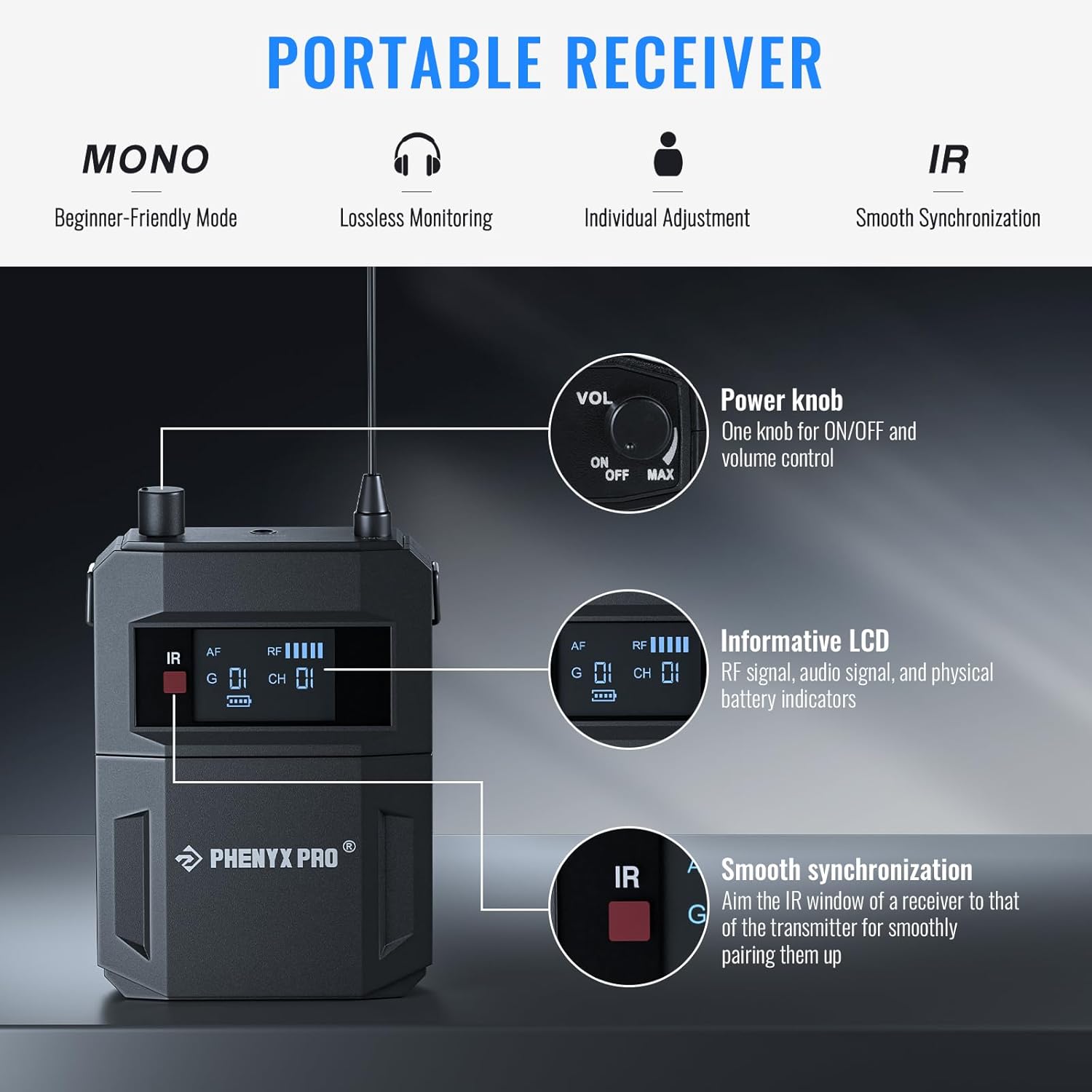 - MONO MONITORING: Immerse in crisp mono audio with our wireless in-ear monitor system. Mono monitoring of the wireless IEM system eliminates phase issues that can cause blurring or distortion in stereo systems, ensuring clear, focused audio output. The mono in ear monitor system provides consistent sound, simplified setup, and improved signal stability, making it an ideal choice for professionals like church pastors, conference hosts, broadcasters, and live performers who require reliable audio monitoring