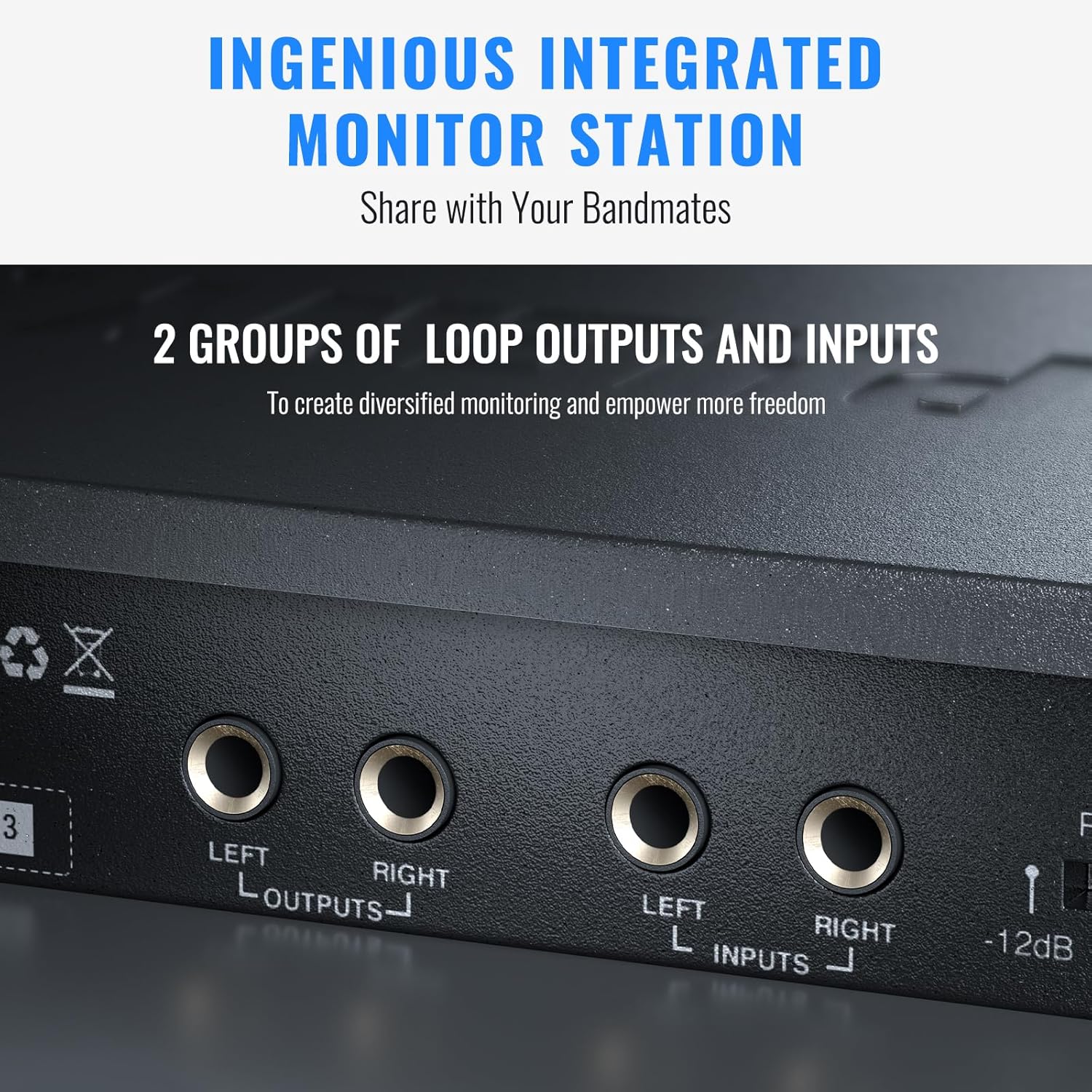 - DAISY CHAIN CONNECTION: The dual channel in ear monitor wireless provides two groups of left/right inputs and loop outputs to handle diversified monitoring requirements. The LOOP OUT left/right jacks of the sistema de monitoreo in ear allow the signal to be daisy-chained to additional channels, enabling seamless audio monitoring sharing among bandmates. This integrated monitor station offers you a flexible and versatile monitoring experience