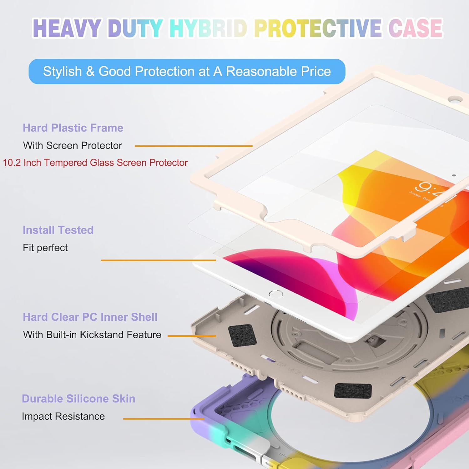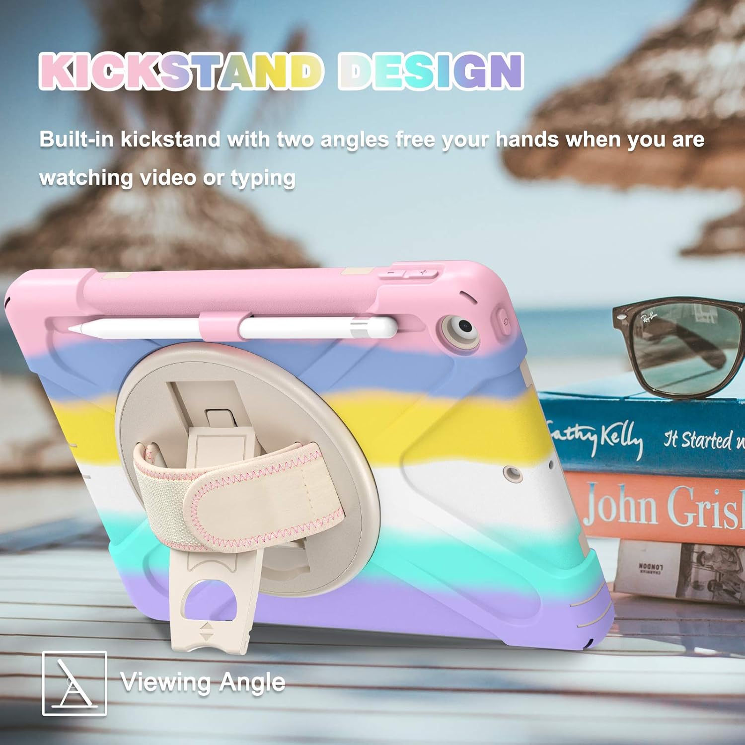 - 360° Rotating Stand & Hand Strap: Rotatable kickstand allows multi-angle viewing, pretty easy for movie watching and kids boys girls toddlers learning on the go. Soft rotating handle strap prevents falling of iPad 9th generation, featuring convenient use for teachers, students, waiters, doctors, nurses and conference presenters