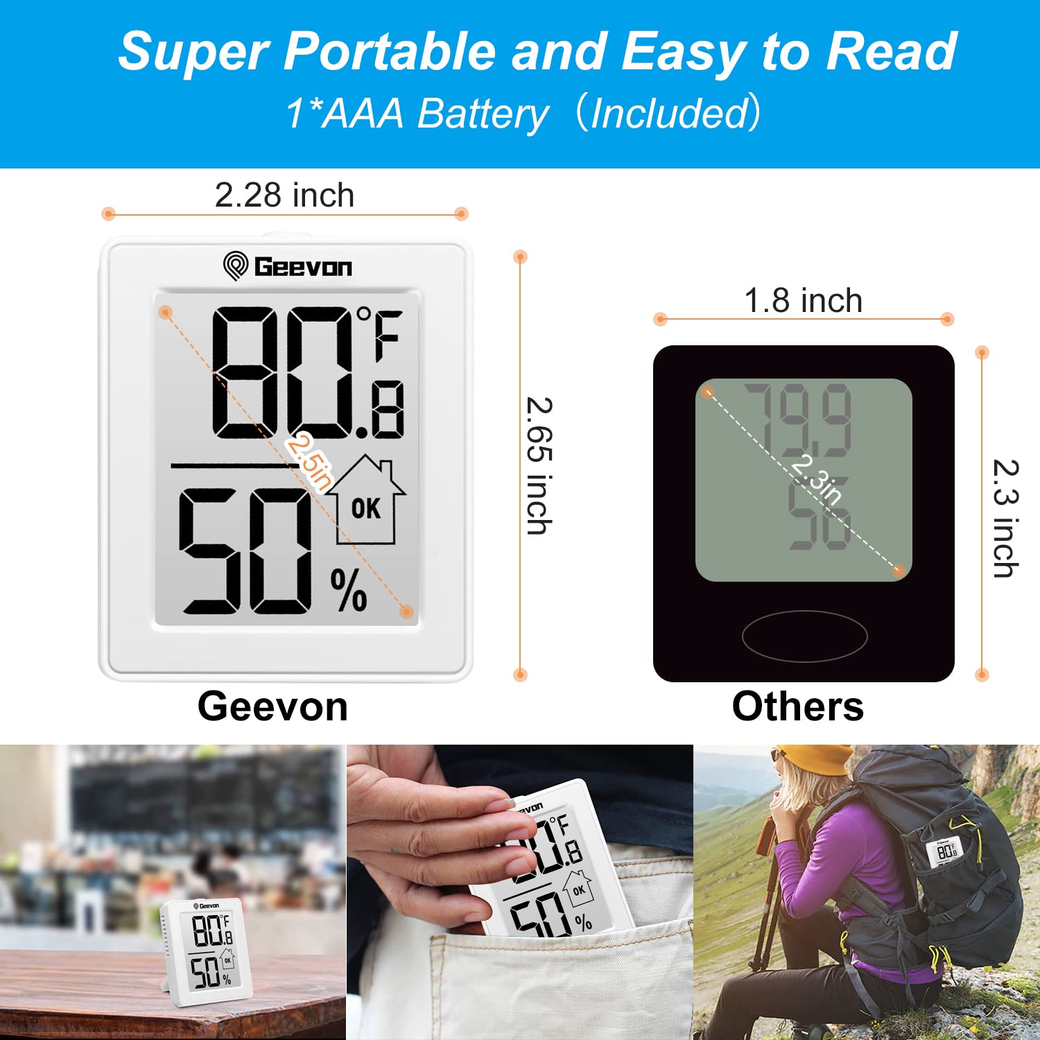 - 【Clear 2.5 Inch LCD Humidity Monitor】Thermometer indoor features a 2.5 inches LCD display with large bold numbers and easy to read even from a distance.Portable digital hygrometer Not only is it lightweight, compact, and easy to put in your pocket and put it anywhere in your home or carry to the outdoors.Powered by AAA battery (included)