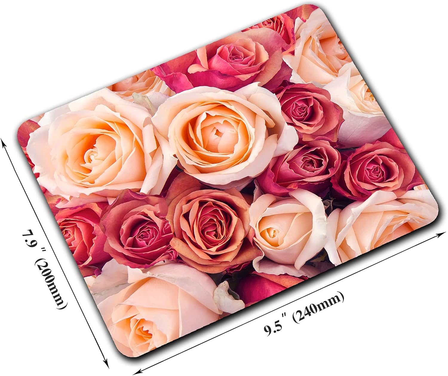 Blooming Roses Mouse Pad, Beautiful Flowers Mousepad for Design, Anti-Slip Rubber Base Wireless Mouse Pads for Laptop
