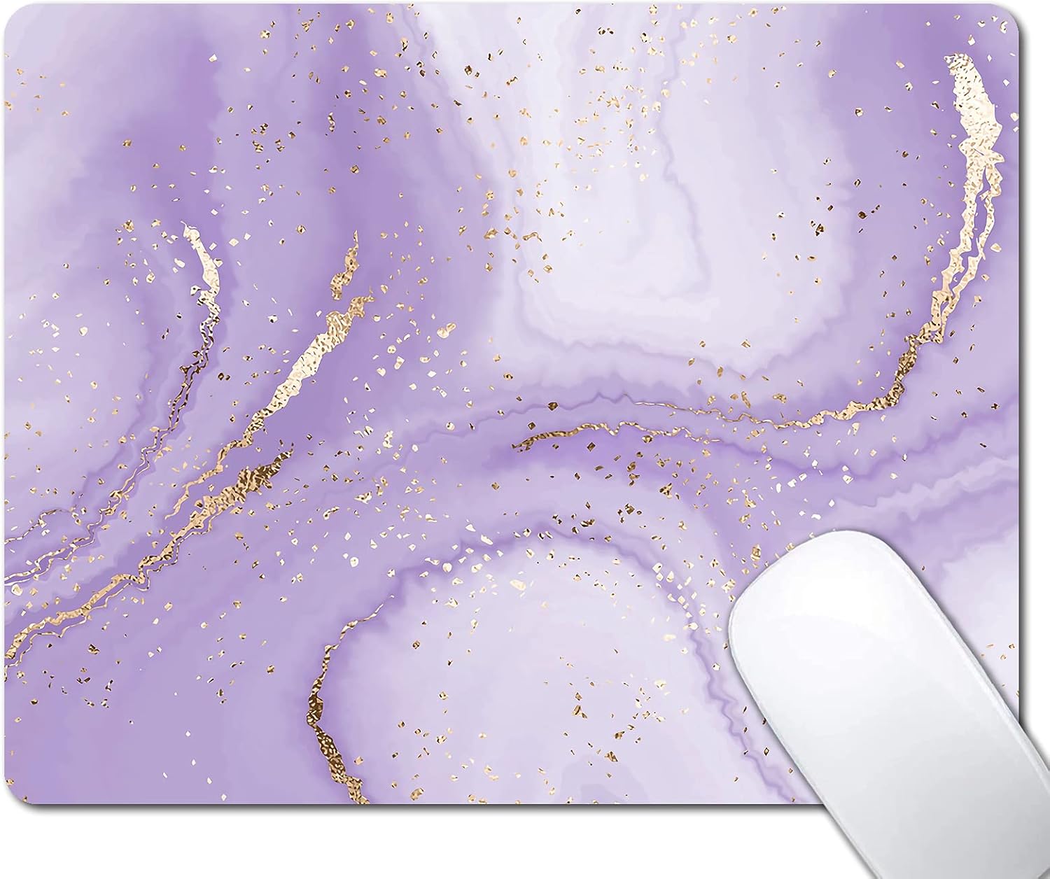 Gold Splatter Marble Mouse Pad, Purple Texture Marbling Mousepad for Design, Anti-Slip Rubber Base Wireless Mouse Pads for Laptop