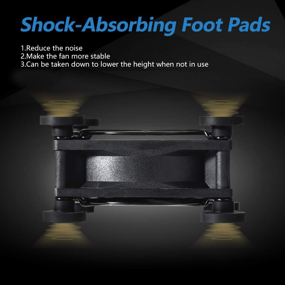 - Dimension: 3.64” X 3.64” X 1.81”. Shockproof foot pads can make the fan lay flat or upright.