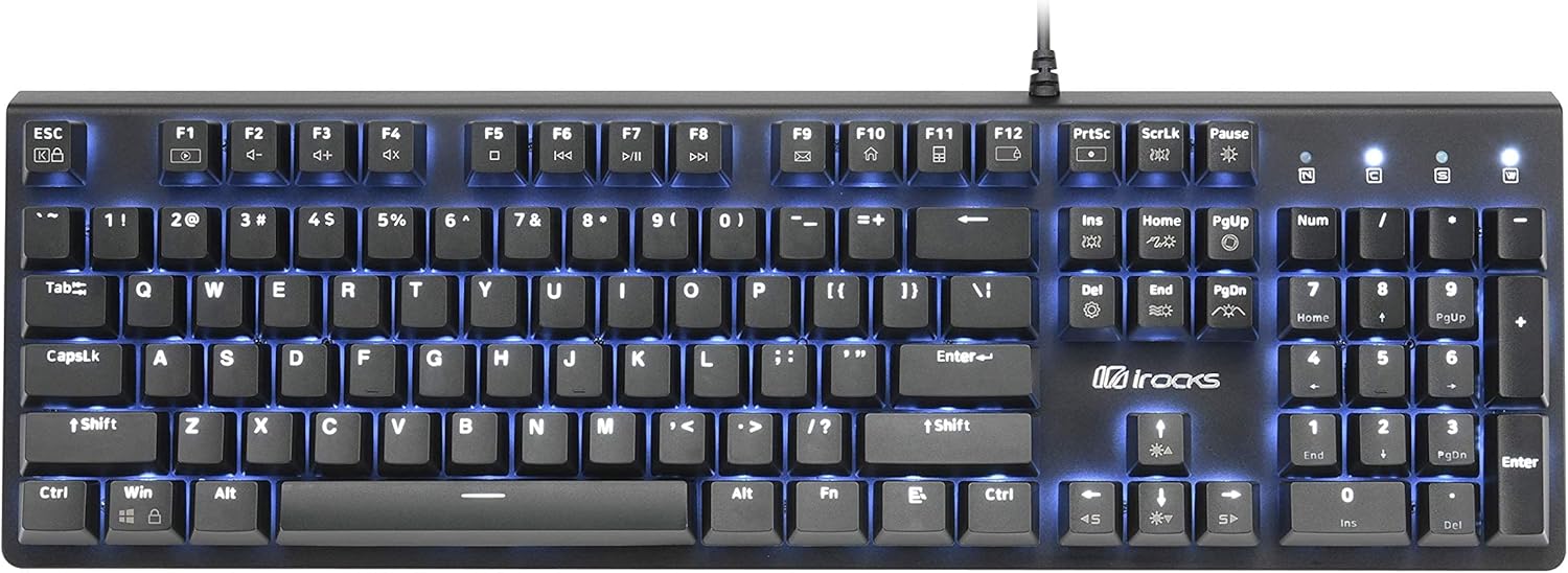 i-rocks K75M Illuminated Mechanical Keyboard, 104 Keys, PBT Keycaps, Backlit LED Light and Shortcut Keys - Programmable Light & Macro Recorder (Cherry MX Red Switch, Black)