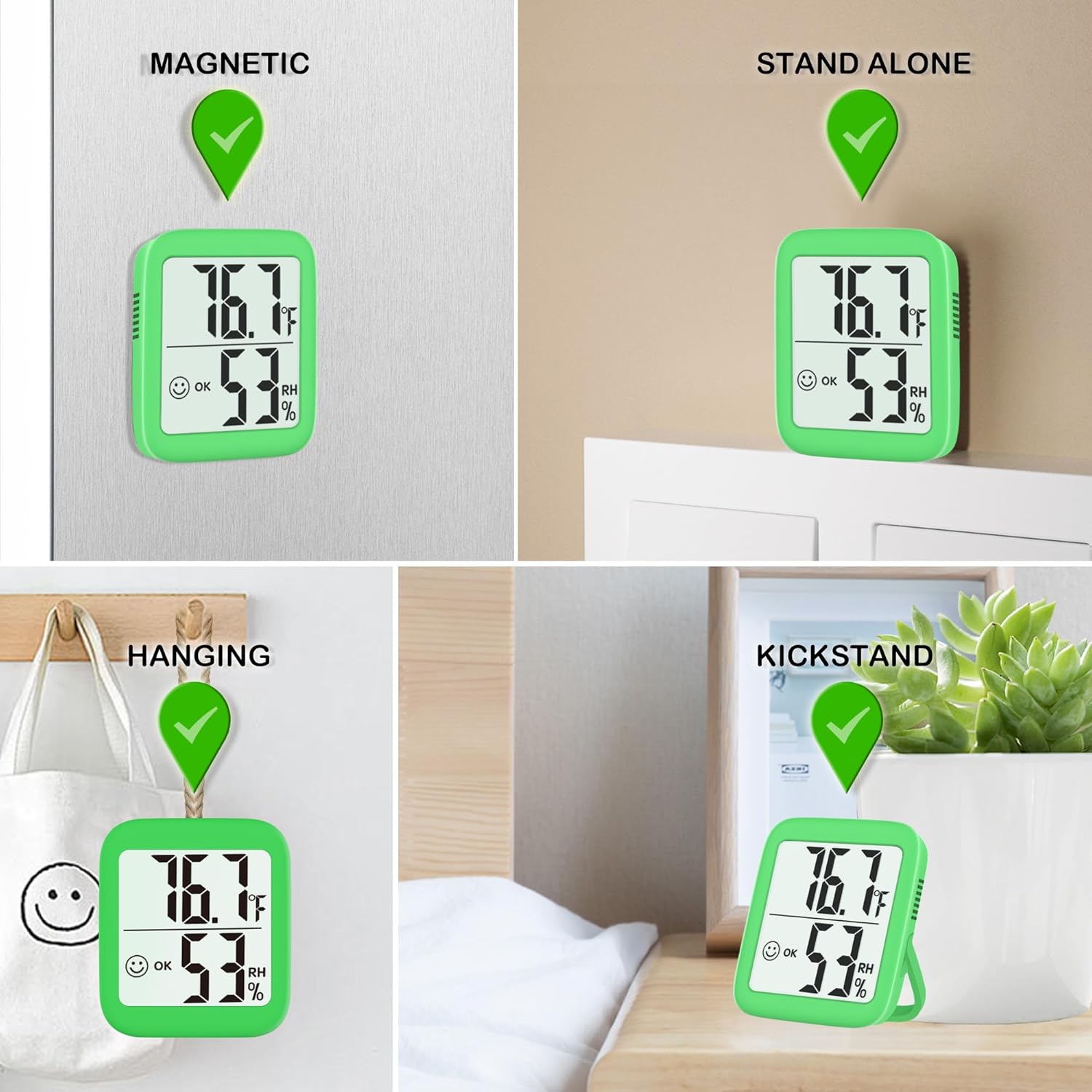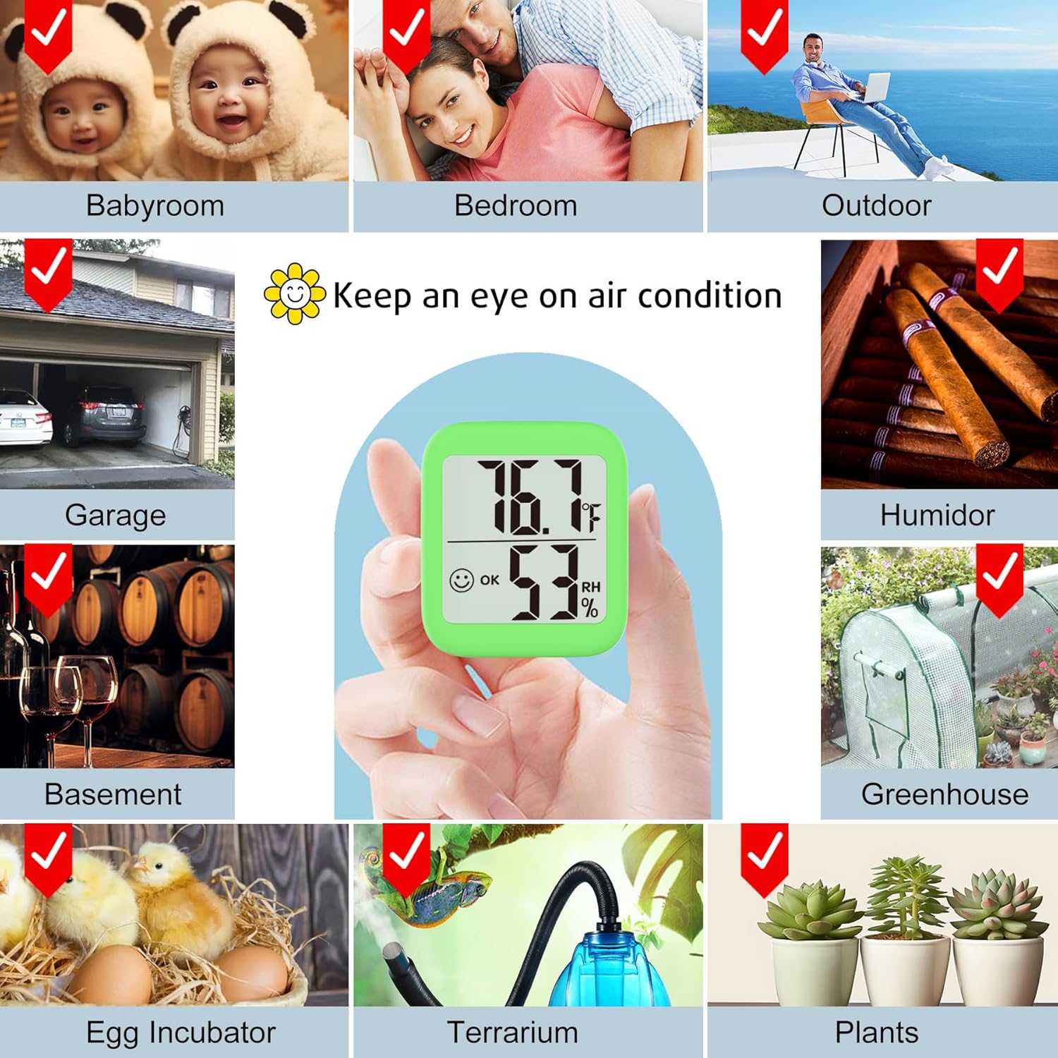 - This 2-pack indoor hygrometer thermometer helps monitoring room temperature and humidity in real time. Temperature range: -58 ~ 158 ℉( -50 ~ 70℃ ), Humidity range: 10%~99%